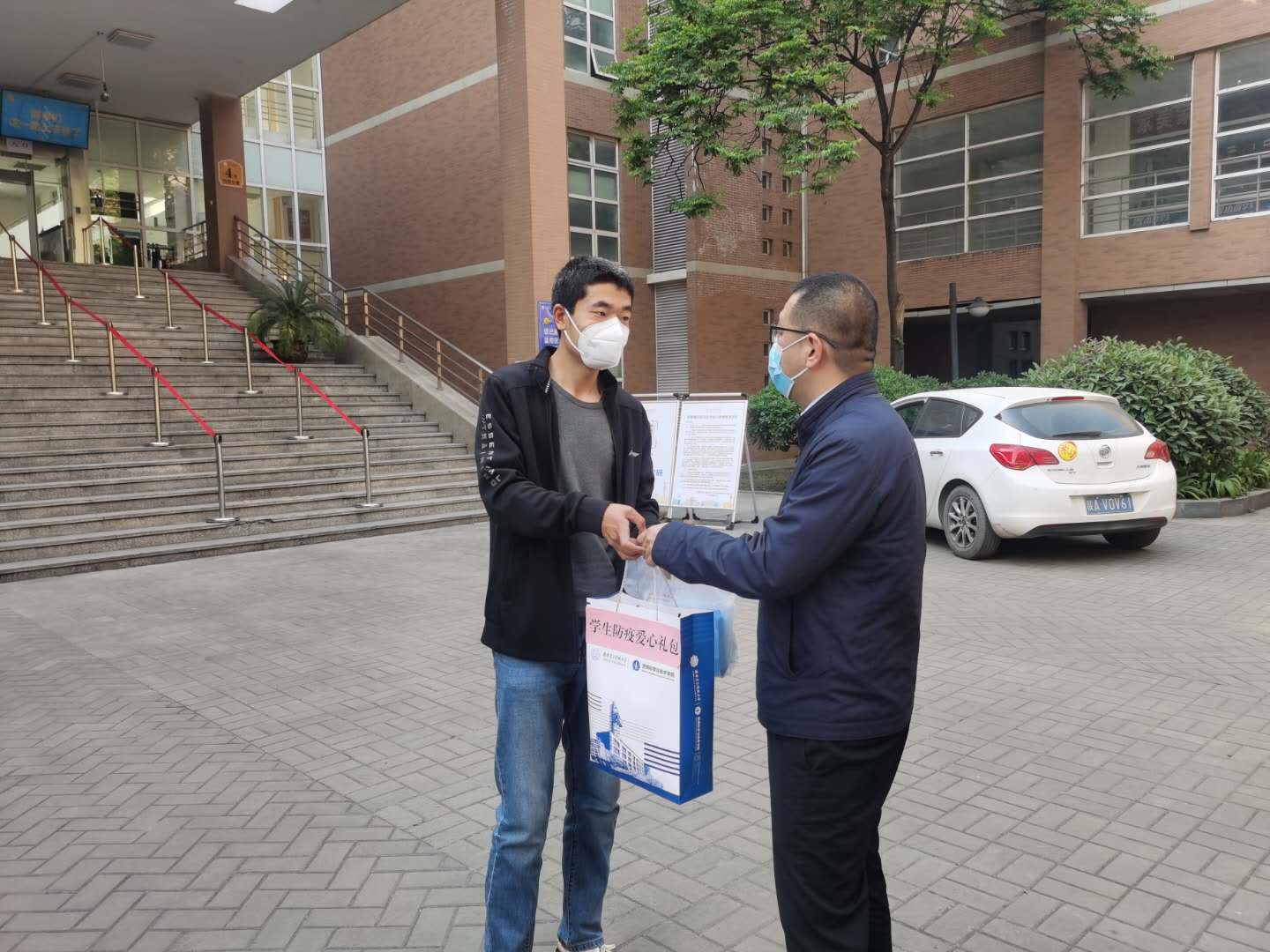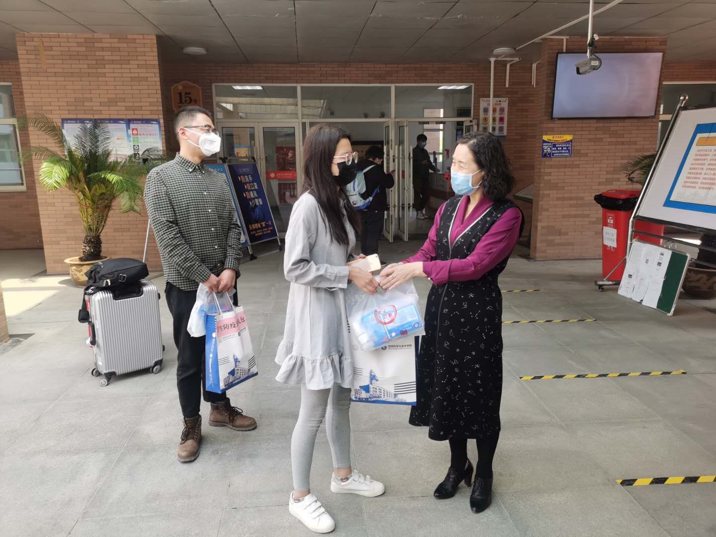 27日下午,空间公司党委书记朱文凯、执行经理李小平和其他学院领导班子成员、学院办公室负责人、毕业生辅导员来到员工宿舍看望返校员工,了解关心员工的返校情况,向第一批返校员工发放防疫消毒物资和水果食品等爱心礼包,传达学院关怀。朱文凯再三嘱咐同学们返校后务必遵守学校相关要求和公寓管理规定,坚持每日晨午检和宿舍消毒清洁,每日保持与家长和辅导员的联系,希望大家同学们利用难得的返校时光按时完成毕业设计和补考,潜心学习、提升自我。李小平与同学们亲切交流,欢迎大家回到阔别已久的大学校园,详细了解员工返校途中的交通状况,叮嘱大家做好防疫消杀工作,希望返校员工珍惜最后在学校的美好时光为老员工活画上圆满的句点,同时把美好的校园景色和积极向上的正能量传递给其他尚未返校的同学。