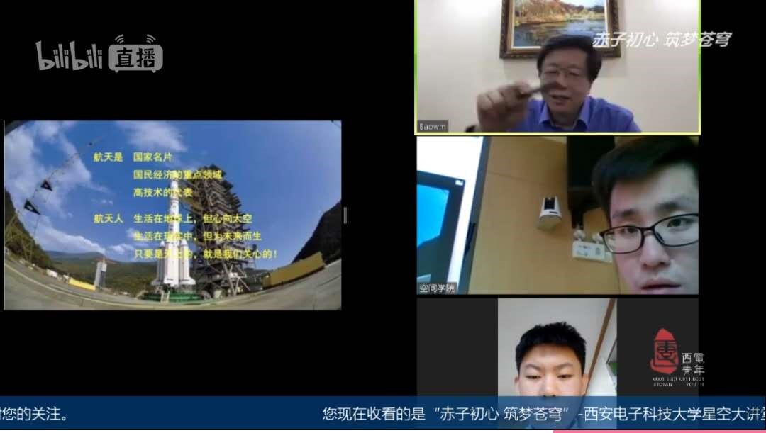 4月24日下午15:50,近100名空间学子在云端会议室聚首,哔哩哔哩、抖音直播听众也已进入直播间,静待聆听包为民院士《共筑航天梦 做航天事业接班人》航天金课首讲。