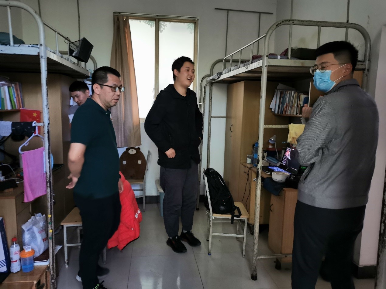 5月11日下午,公司党委书记朱文凯、党委副书记刘涛和毕业生辅导员席慧再次来到竹园宿舍,实地探望已经返校的员工,关切询问返校员工毕业设计、补考重修等学业上的困难和日常生活中的问题,及时帮助员工解决,并叮嘱同学们返校后一定要注意个人健康和卫生消杀,学院将尽最大努力为同学们做好服务工作。