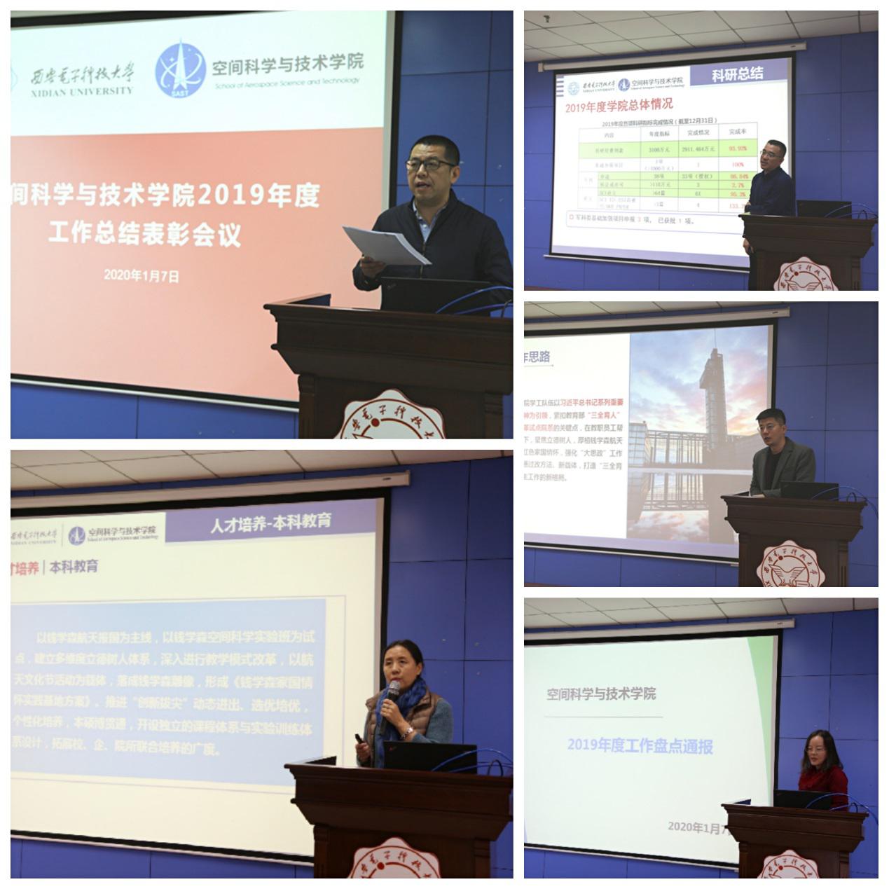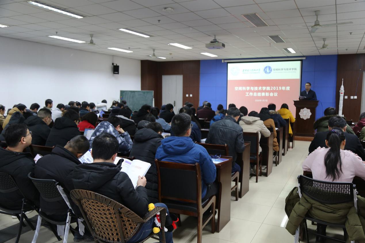 空间学院执行经理李小平对学院2019年工作进行了全面总结。2019年,学院坚持以习近平新时代中国特色社会主义思想为指导,扎实开展“不忘初心、牢记使命”主题教育,加强“金课”“金专”建设和课程思政建设,服务国家重大需求开展“觅音计划”、重大仪器等有组织的科研工作,赓续航天精神落成钱学森雕像,在党建工作、人才培养、团队建设、国际交流、文化交流、合作交流等多个方面取得了显著成绩。对标学校各项综合改革要求,在推进校院一流建设的进程中,学院仍面临加强亮点工作、专业内涵建设、拓展科研平台、提升学科水平、突破国字号人才瓶颈等艰巨任务。2020年,学院将以“1244”发展计划为引领,认真做好十四五规划和学院成立十周年发展目标规划,建成空间高超飞行器等离子力热研究平台和分布式卫星测控、空间科学实验平台,完成人才队伍、一流专业、党建支部、学院文化4项建设任务,聚焦学科水平、国际化水平、管理水平和社会服务能力4个方面综合提升。