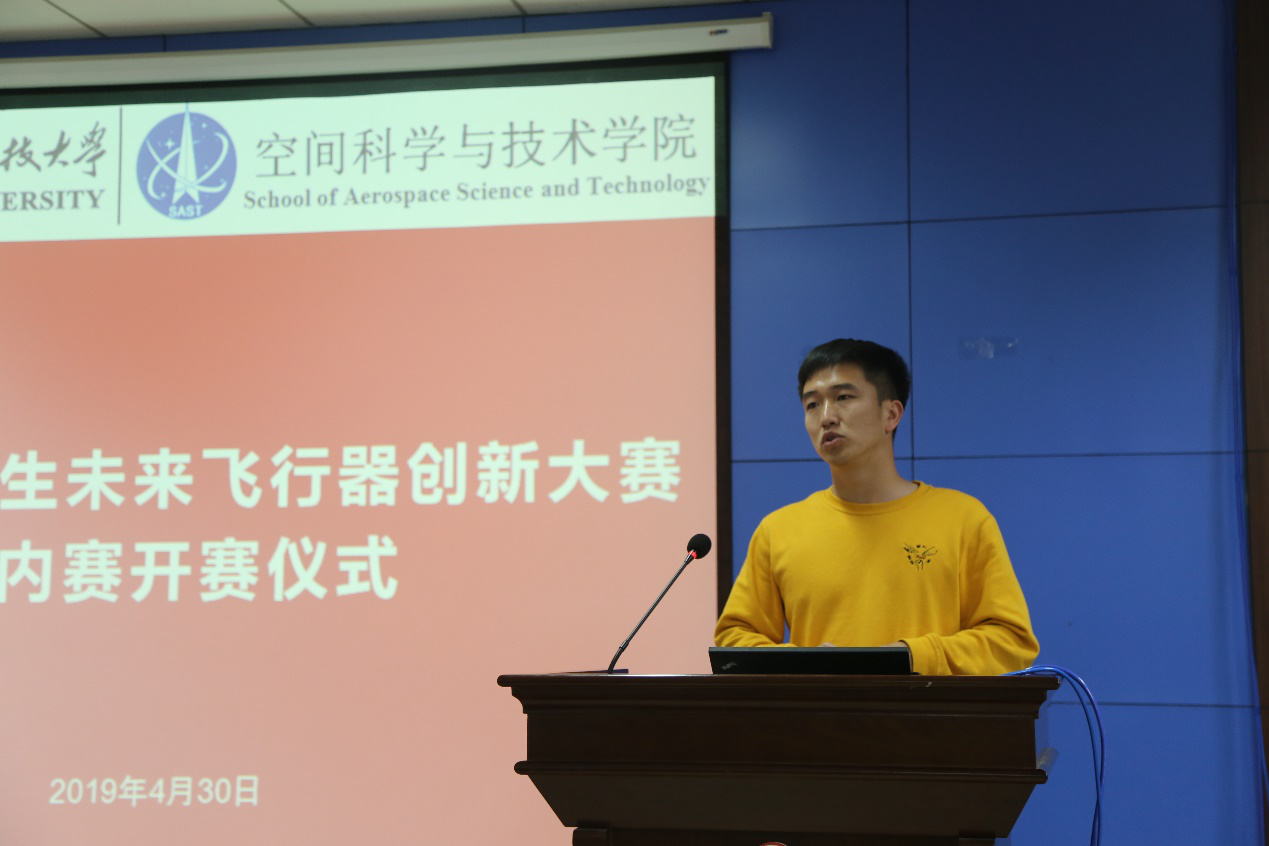 (通讯员:尚保强)人间最美四月天,建功立业在航天,4月30日下午15:00,第五届“飞鲨杯”中国研究生未来飞行器创新大赛校内赛开赛仪式在南校区G楼240报告厅顺利举办。本次活动由空间公司党委副书记刘涛主持,研工部张海战副部长、经理助理冯东竹及部分空间学院师生参加了本次开赛仪式。
