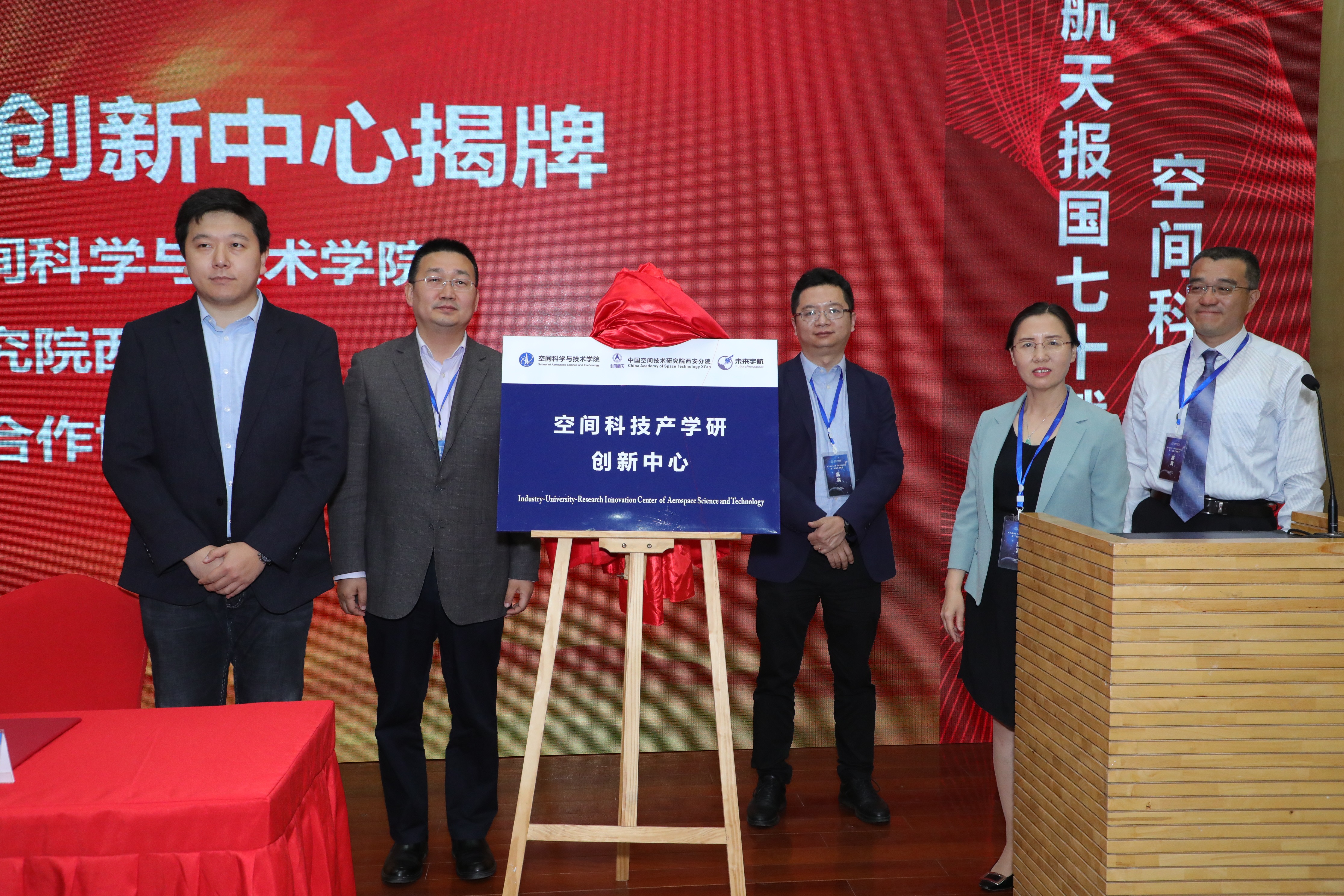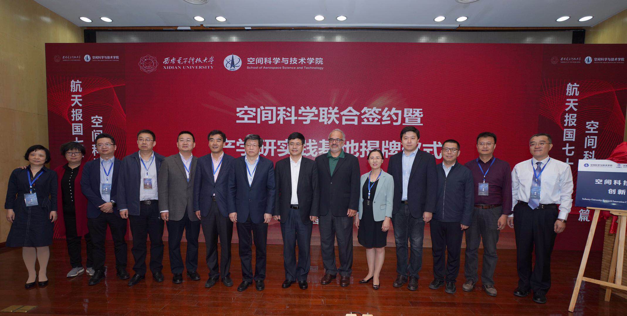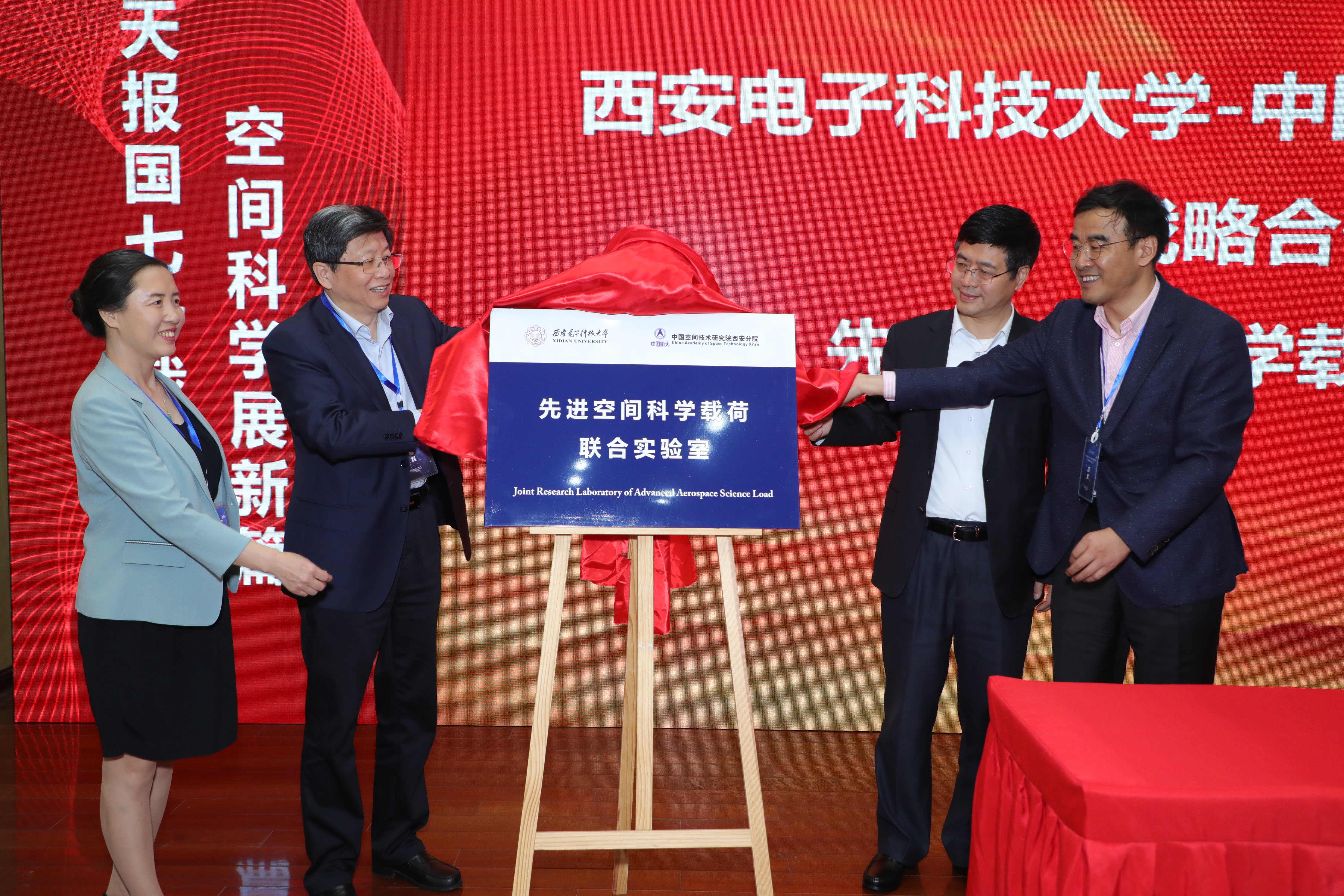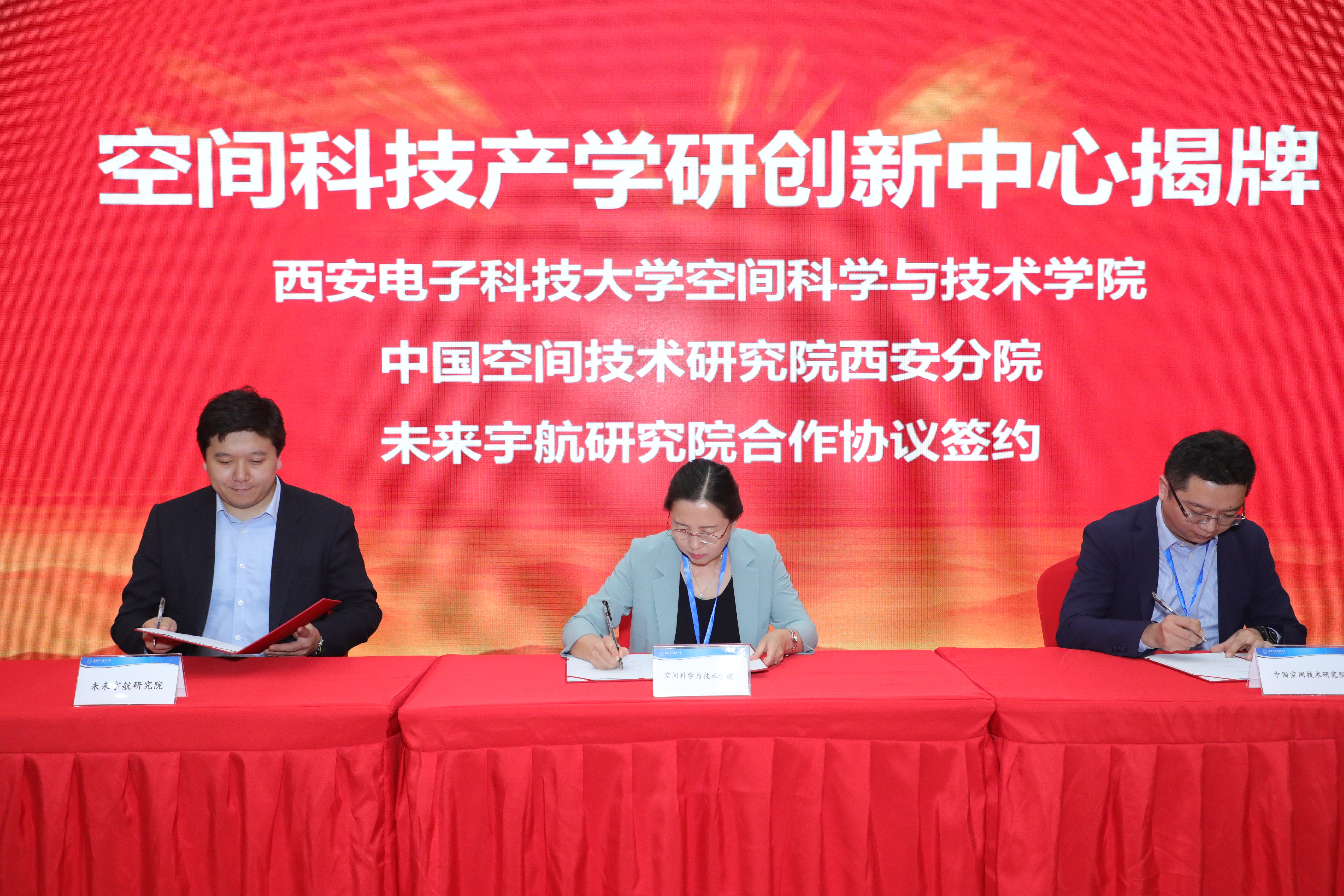陕西省科技厅副厅长兰新哲、中国航天科技集团院士包为民、中国空间技术研究院西安分院经理李军与tyc539太阳集团执行经理李小平共同为先进空间科学载荷联合实验室揭牌。中国空间技术研究院西安分院市场研发部副部长董坚、未来宇航研究院创始人牛旼与西电tyc539太阳集团执行经理李小平代表三方共同签约,共建空间科技产学研创新中心。中国空间技术研究院西安分院副经理李立、相关航天科技合作公司和tyc539太阳集团师生代表共同参加签约揭牌仪式。
