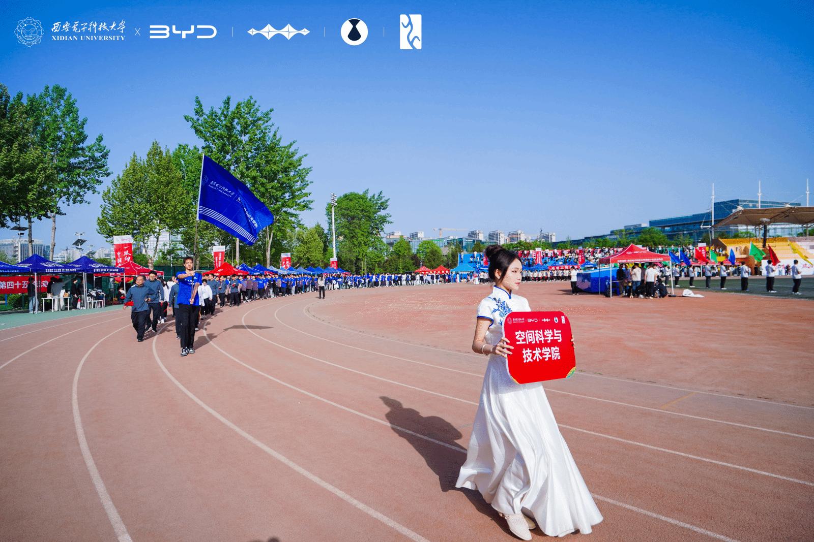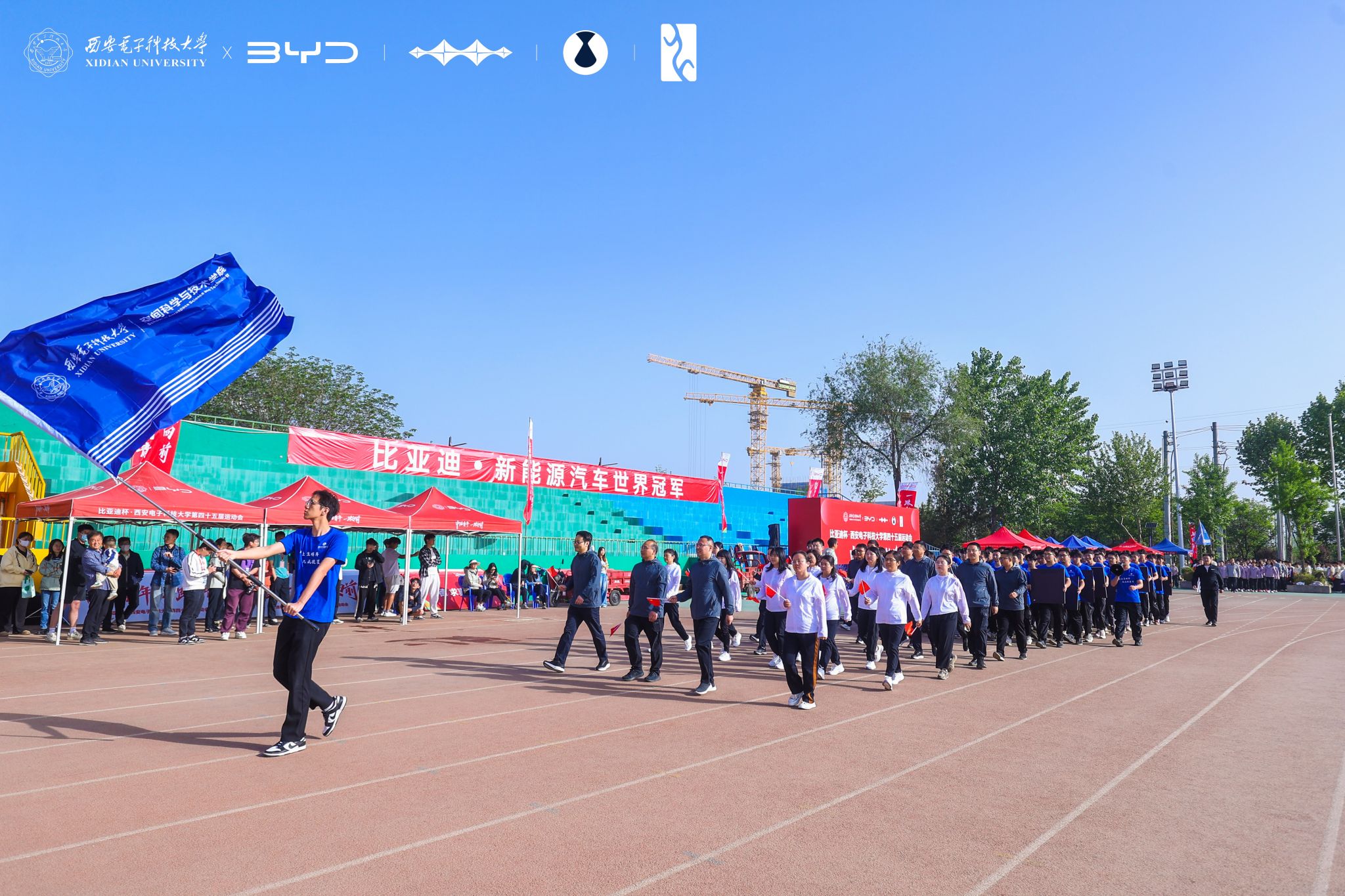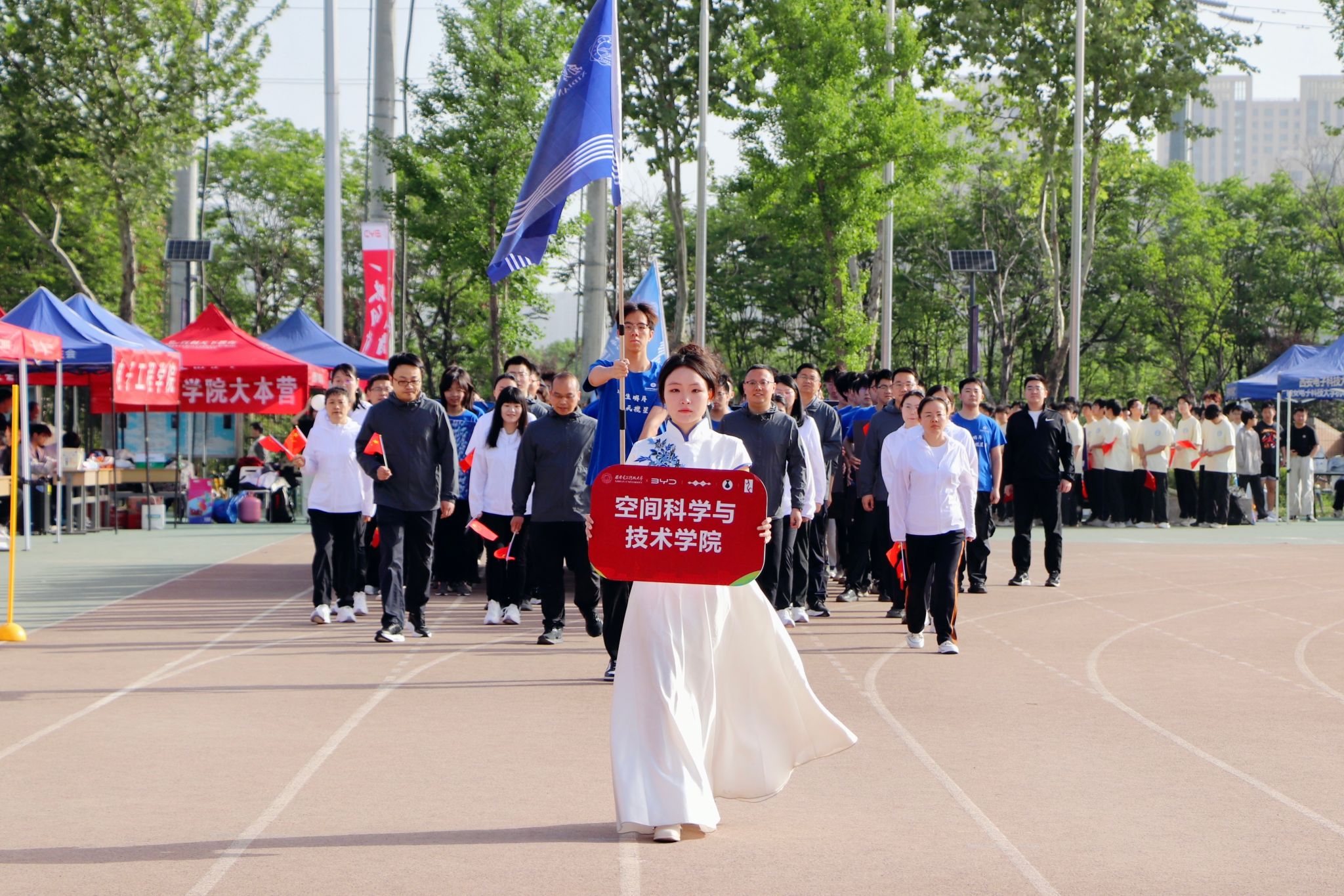 4月23日上午,tyc539太阳集团第四十五届运动会在南校区北田径场开场。哨声吹响,一场迸发青春力量的体育盛会拉开序幕。tyc539太阳集团师生代表步伐矫健、意气风发地步入赛场。