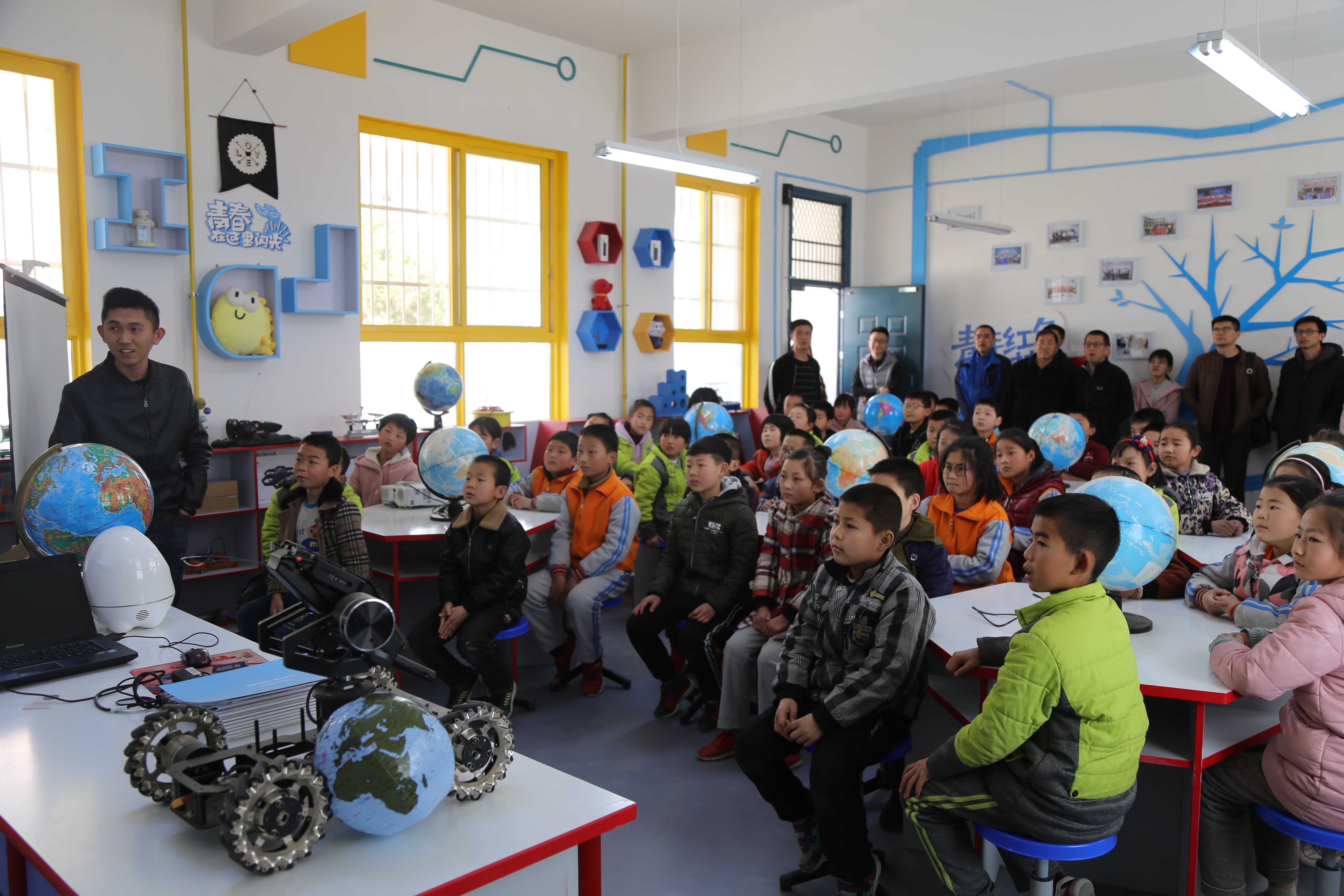 捐赠仪式后,学院员工代表张鹏为荆姚学校员工带来了一场主题为《认识地球》的“梦想课程”,张鹏从麦哲伦船队环游地球的故事讲起,生动形象地为孩子们讲解了地球的基本地理知识与宇宙天文常识。现场孩子们热烈交流,踊跃提问,并纷纷表示希望未来还能继续参与“梦想课程”,和哥哥姐姐们共同学习,增长知识。