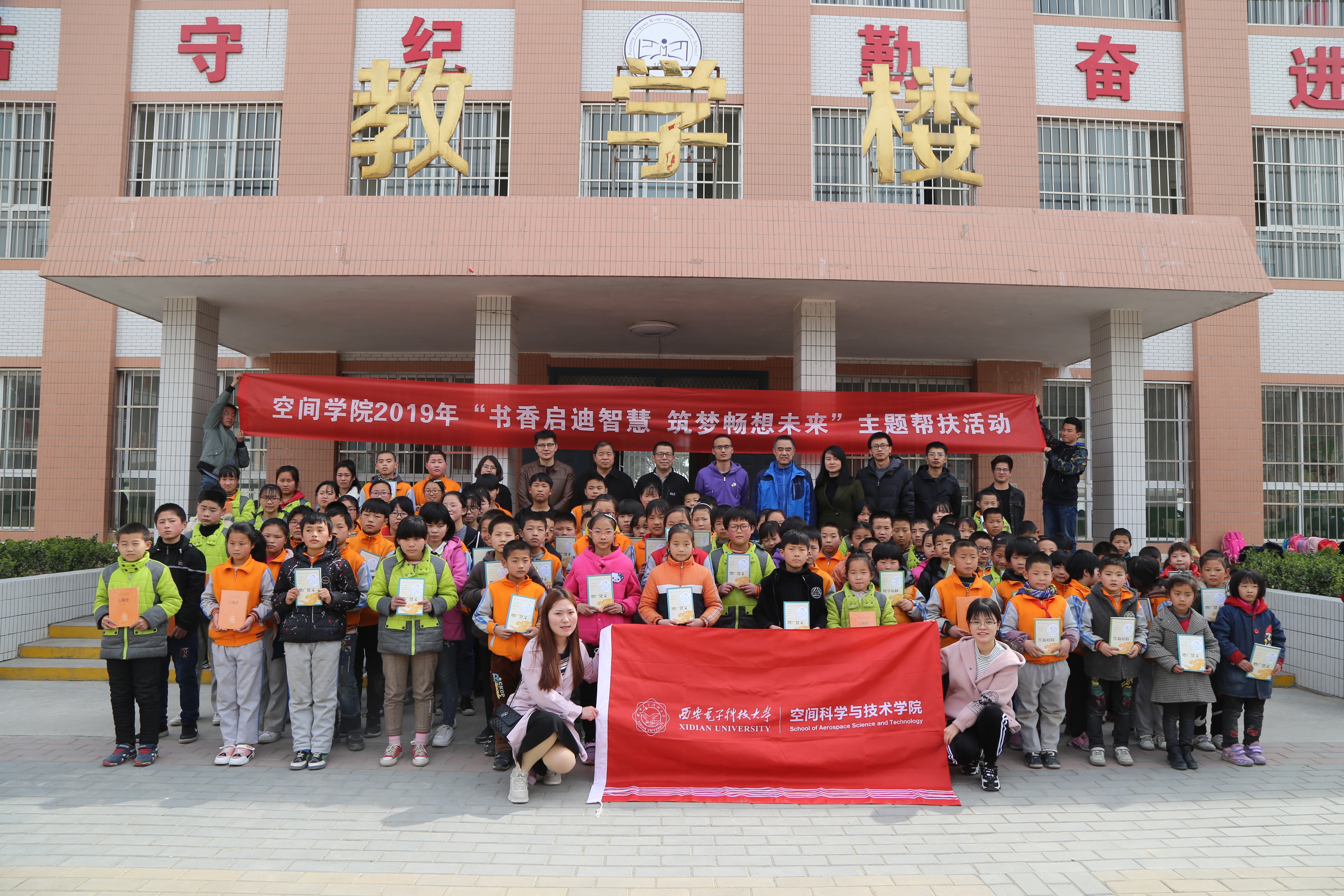(通讯员:郑瑞博 杨升)为深入学习贯彻习近平总书记关于扶贫工作的重要论述,落实学校年度脱贫攻坚目标任务。3月22日,tyc539太阳集团师生前往蒲城县荆姚九年制学校开展精准帮扶活动,向荆姚学校员工捐赠图书并举办“梦想课程”。空间公司党委书记朱文凯、党委副书记刘涛、荆姚九年制学校董事长陈方平、空间学院实验中心党支部全体党员以及师生代表20余人参加了本次活动。