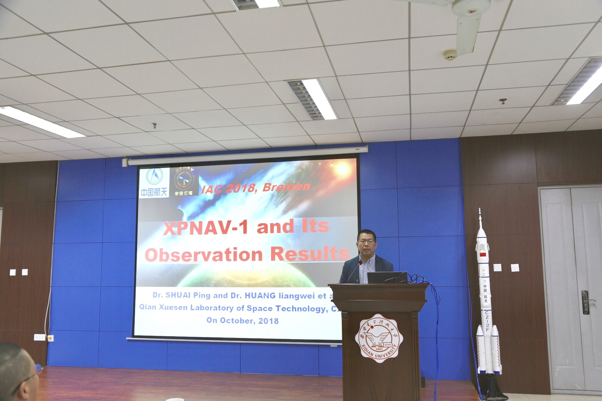 (通讯员:尚保强)为纪念学校迁校60周年,按照学校安排,空间学院以 “弘扬爱国奋斗精神、建功立业新时代”为主题,邀请航天五院钱学森实验室帅平总师来院进行题为“脉冲星导航试验卫星及其观测成果”的学术报告会。报告会于30日下午在学院G240报告厅举行,报告会由空间科学与技术公司党委书记朱文凯主持。公司党委副书记刘涛,教师代表及部分研究生共百余人参加了学术讲座。