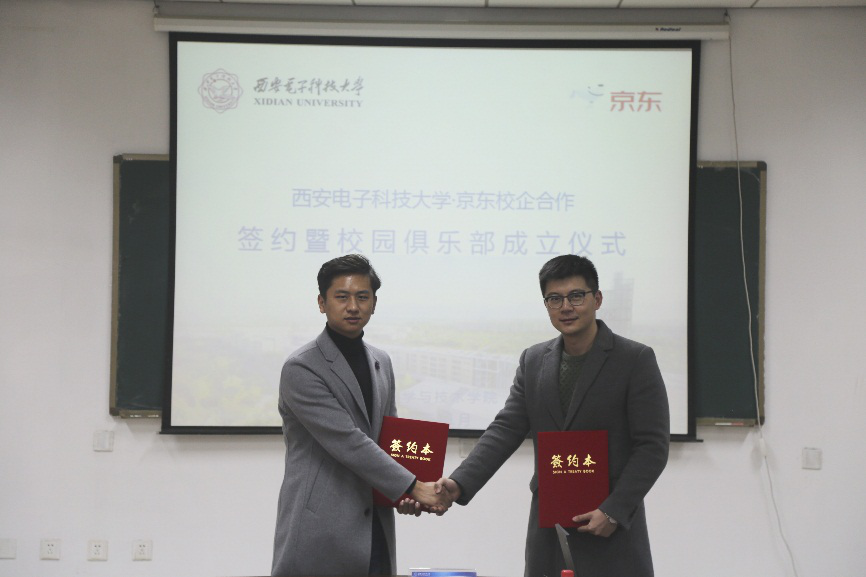 刘涛和郑炎分别代表双方签署了校企合作协议。朱文凯和樊琪共同为tyc539太阳集团京东校园俱乐部揭牌,宣布俱乐部正式成立。
