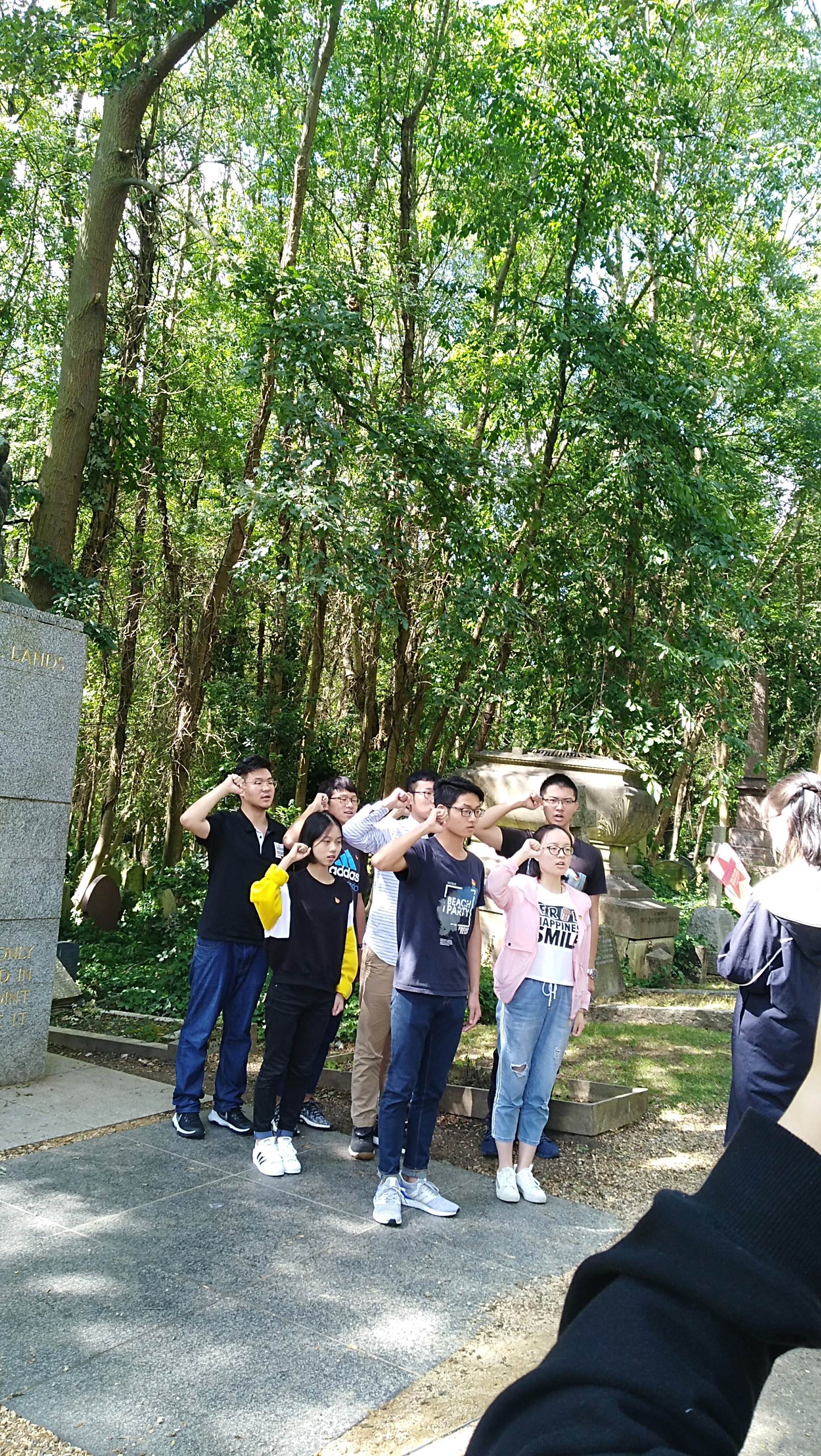 此次赴英访学,正值伟大的无产阶级领袖马克思诞辰200周年,为此,西电师生一行人特意来到马克思公墓拜谒。员工代表在墓前献上白蜡,师生集体低头默哀。大家在马克思墓前共同回顾共产党宣言的著名选段,集体重温入党誓词。在这位伟大无产阶级领袖的雕像前,西电师生深色庄重,誓言铮铮,展现了“三有西电人”良好的精神风貌和红色继承人的责任心。