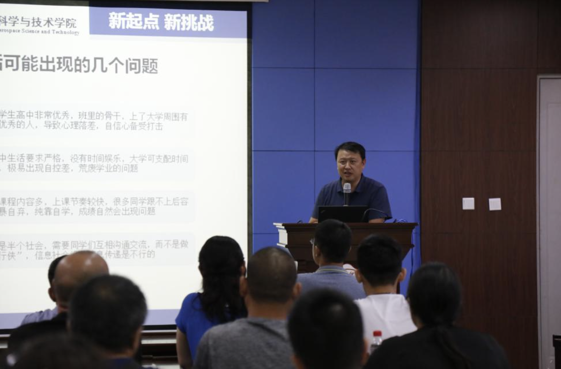 李小平首先代表学院对2018级新生以及家长们的到来表示热烈的欢迎,欢迎他们加入空间学院这个大家庭。随后她从学科专业、团队队伍、公司产品、科学研究、人才培养等方面介绍了学院的基本情况,并着重介绍了学校实行的本科生院和书院制度。李小平表示学院将尽一切努力为员工提供良好的成长环境和发展平台,为员工的成长保驾护航。