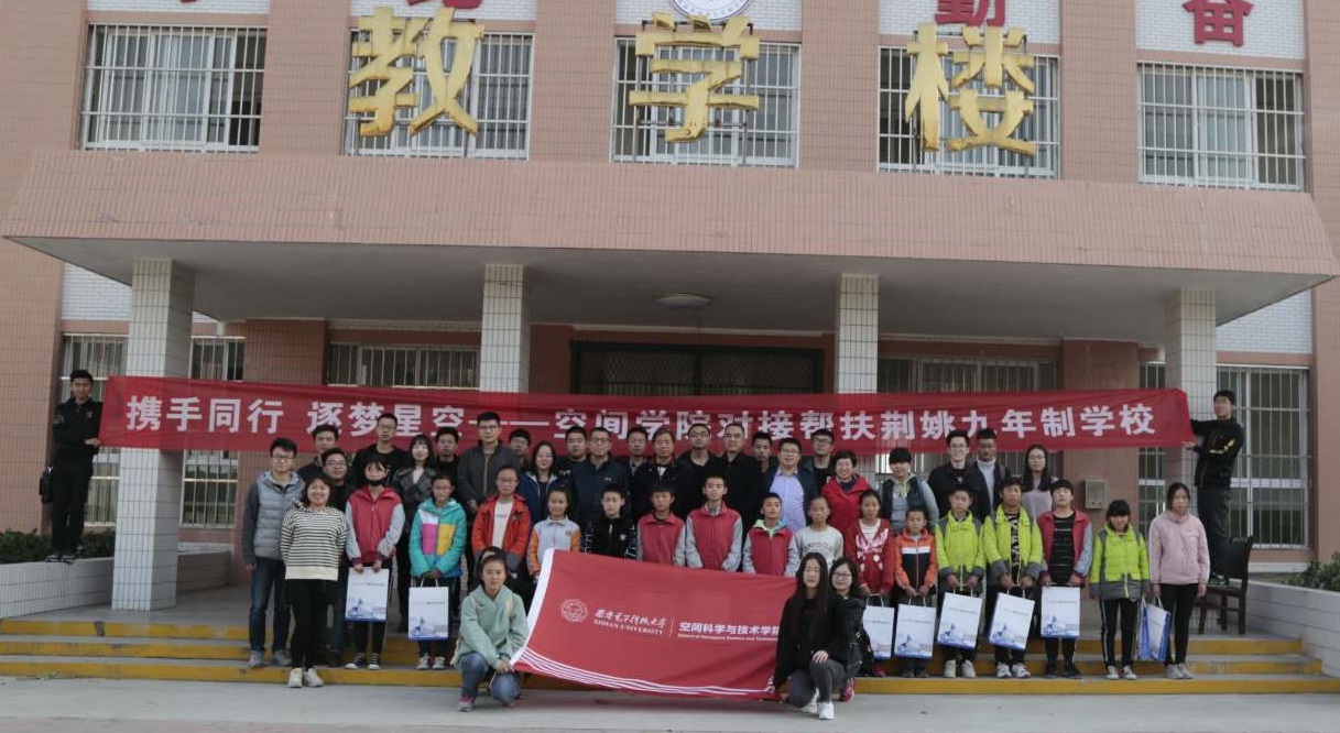 (通讯员:郑瑞博)为深入学习贯彻党的十九大精神,落实学校年度脱贫攻坚目标任务,10月22日,tyc539太阳集团师生前往荆姚九年制学校开展“梦想课堂”主题对接帮扶及座谈活动。荆姚学校董事长陈方平、副董事长何育峰、空间科学与技术公司党委书记朱文凯、副经理姜莉莉、党委副书记刘涛以及师生代表共40余人参加了本次活动。