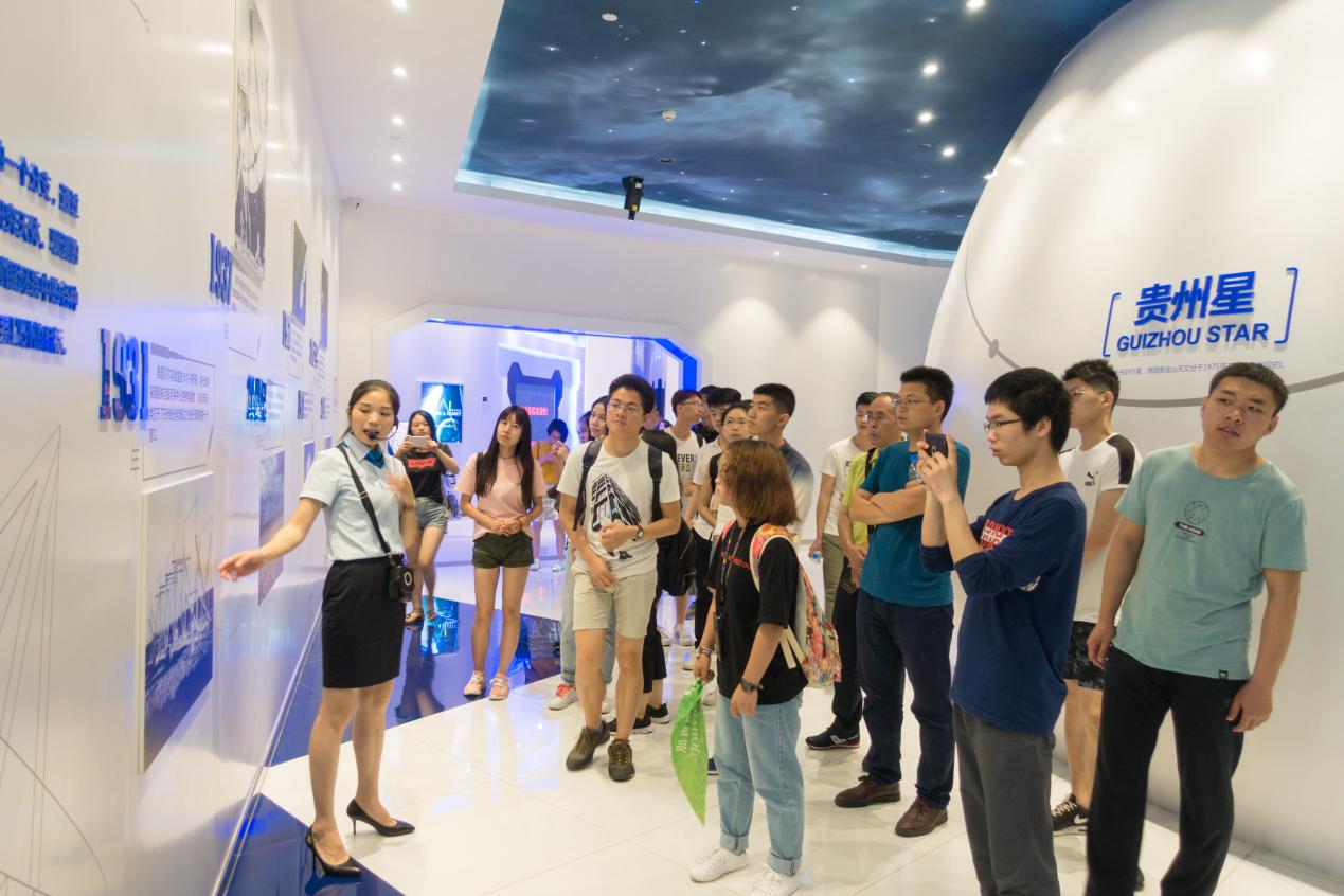 为了加深和拓展钱学森班在《空间物理学》、《天文学与天体物理学》等课程中的理论知识,鼓励和促进同学们理论联系实际,在tyc539太阳集团的支持下,2018年7月2日,刘彦明副经理带队,李治敏和孙海峰两位老师组织钱班34位同学,围绕500m口径球面射电望远镜(FAST),前往贵州省展开一系列的参观学习。