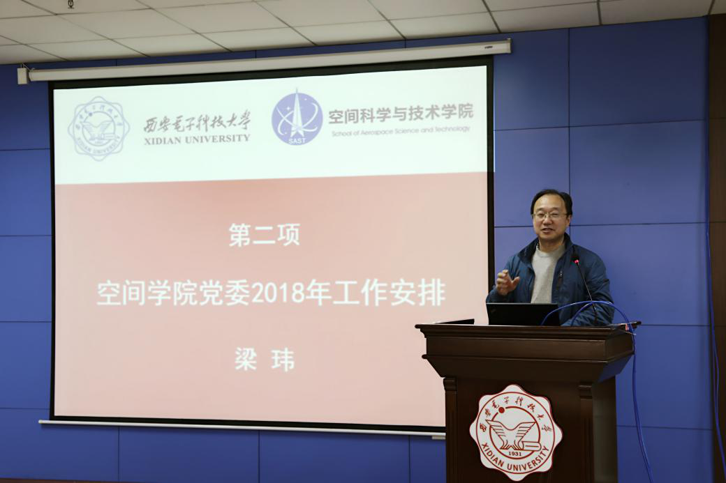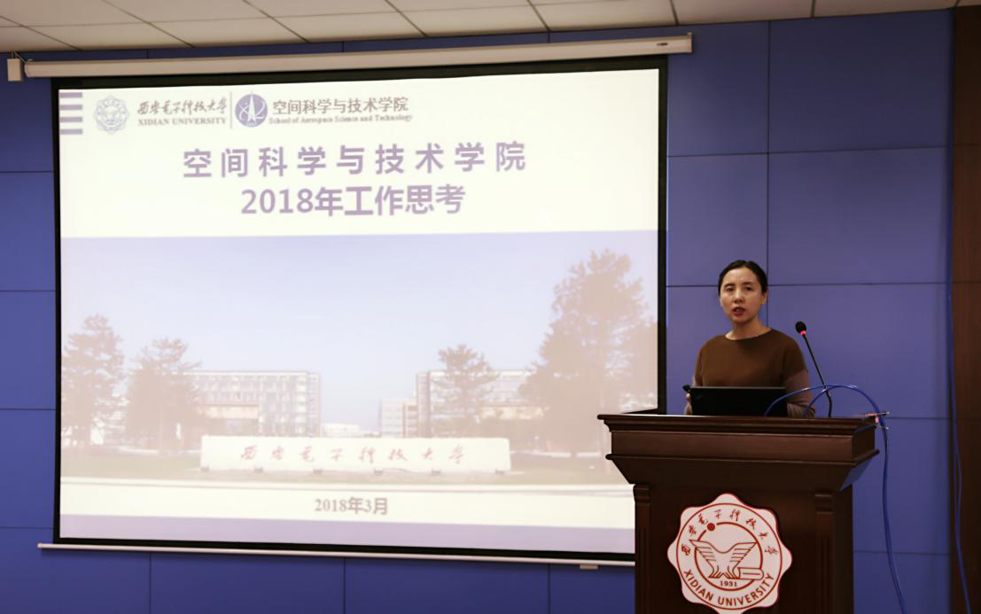 李小平首先对学院2017年工作进行简要总结。她表示,在全体教职工的共同努力下,学院教学、科研、学科、文化发展迅速,体系完整,制度健全,人员规模逐步稳定。在诠释学校工作精神基础上,从学科、科研、公司产品、人才与队伍、制度和文化、国际国内联合六方面布置2018年重点工作。李小平强调学院目标是在空间电子信息领域成为具有牵引发展力并在国内具有较大影响力的一流学院。