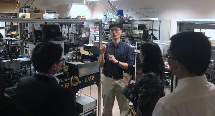 座谈会上,郭予光教授详细介绍了香港大学公司产品特色、日常运行机制和与内地高校的交流情况,李小平教授介绍了学校发展历史和学院的教学科研情况,双方详细探讨了教师互访、员工短期和长期交流学习、精品课程共建及互联网+创新创业大赛等事宜。期间访问了香港大学TELI(Technology Enriched Learning Initiative)、CETL(Center for Enhancement of Teaching and Learning)等公司产品辅助机构,实地参观了香港大学的员工自主学习空间、针对性的考察了机器人实验室、激光通信实验室、虚拟现实实验室等。在科学研究方面,刘彦明教授进行了 “X-ray pulsar signal simulating and processing for orbiting spacecraft”的学术报告,并与港大电子工程系主任李安国教授、副主任杨坤教授等进行了学术交流。