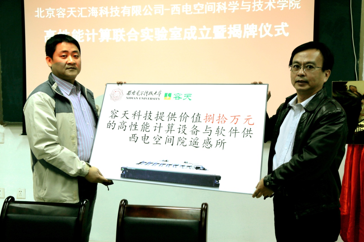 随后李小平执行经理和马志谦总经理签署联合实验室合作备忘录并共同揭牌,马志谦总经理向西电空间学院遥感所黄柏铭教授捐赠设备。