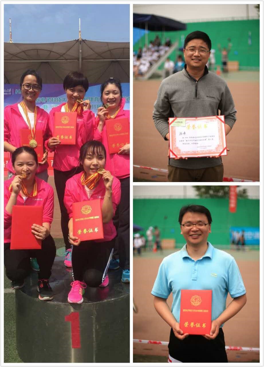 除了别具一格的开幕式表演,空间学院的师生在本次运动会上取得的成绩也同样令人自豪。在教师女子4×100米接力比赛中公司获得第一名的好成绩,第一棒,第二棒,老师们渐渐逼近终点,她们斗志昂扬,一鼓作气摘得桂冠。场边整齐的加油呐喊声震耳欲聋,颁奖台上的骄傲和自豪溢于言表。