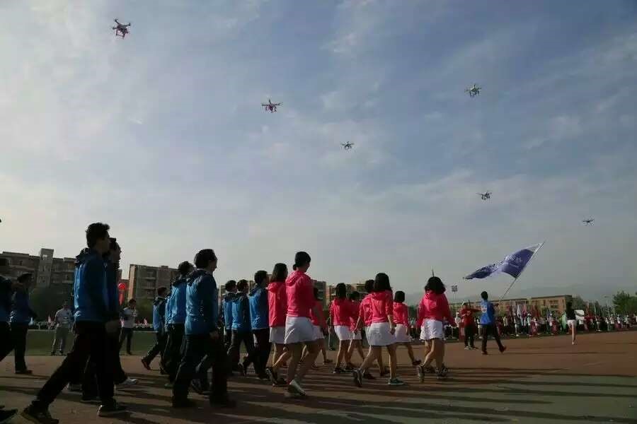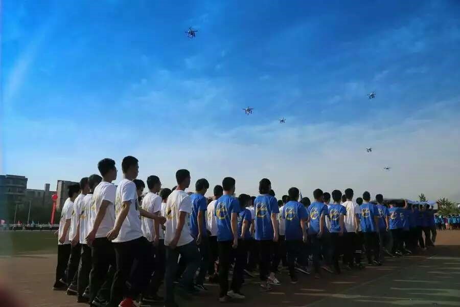 开幕式上空间学院作为第13个方队出现在主席台时,全场的眼光都投向了这支团结一致、新颖靓丽的队伍,由八架无人机组成的无人机编队,引来了全场的喝彩,无人机在飞控手的操作下变换着阵型,紧随其后的是教师与员工方队,队伍的队形转变为飞翔在太空的卫星,随着“心向空间,问鼎蓝天”的口号,队伍继续前进,无人机编队由队伍上方飞过,此时全场掌声雷动,主席台上的领导嘉宾随着音乐节奏一起击掌,最终空间师生以富有创意、精彩新颖的开幕式表演连续三年获得开幕式最佳创意奖。