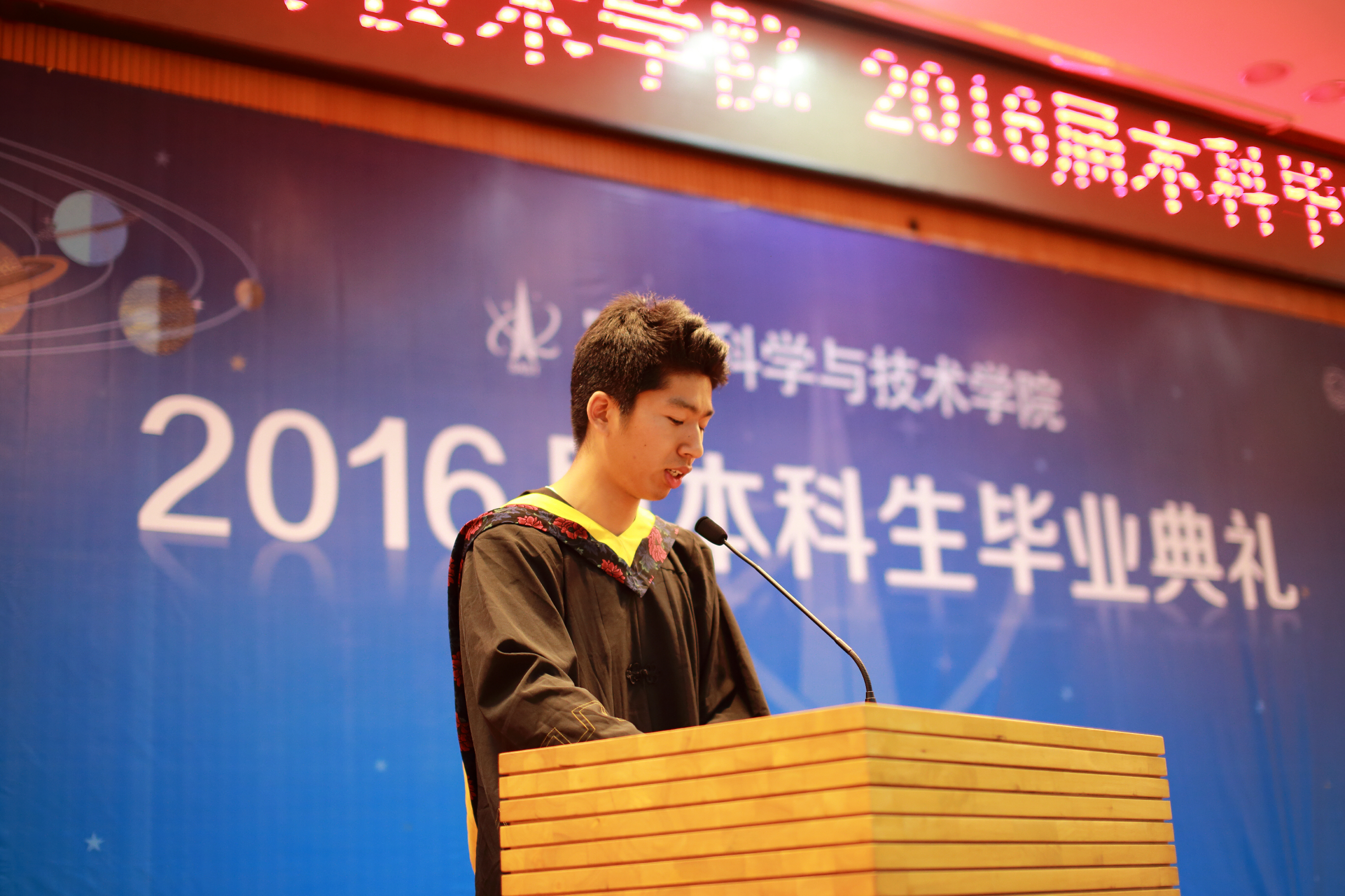 “要走了,才发现心存万般不舍。感谢我热爱的空间学院,正是您的宽容,我们的个性得以施展;正是您的支持,本科生也可以让卫星上天;正是您精心的培养,我们才可以更加自信的昂首走向未来。”毕业生代表王勒铭在发言中抒发了对老师们辛勤奉献最深厚的感恩之心,对学院和母校尽心培养的不舍之情,也代表毕业生承诺今后将时刻谨记自己在每一个社会角色中应有的担当,心怀感恩,善待身边的每个人,在自己的工作岗位中实现自己的人生价值!
