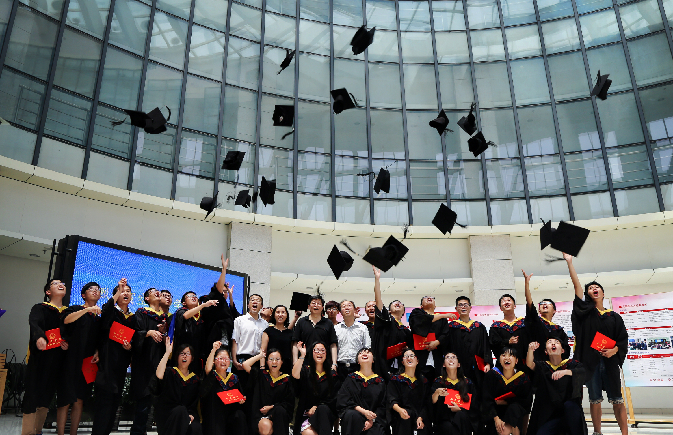 随后,郝跃与包为民共同为每一位毕业生颁发毕业证与空间毕业杯,并合影留念。现场气氛热烈,掌声雷动,每一位毕业生脸上都洋溢着激动与幸福的笑容。