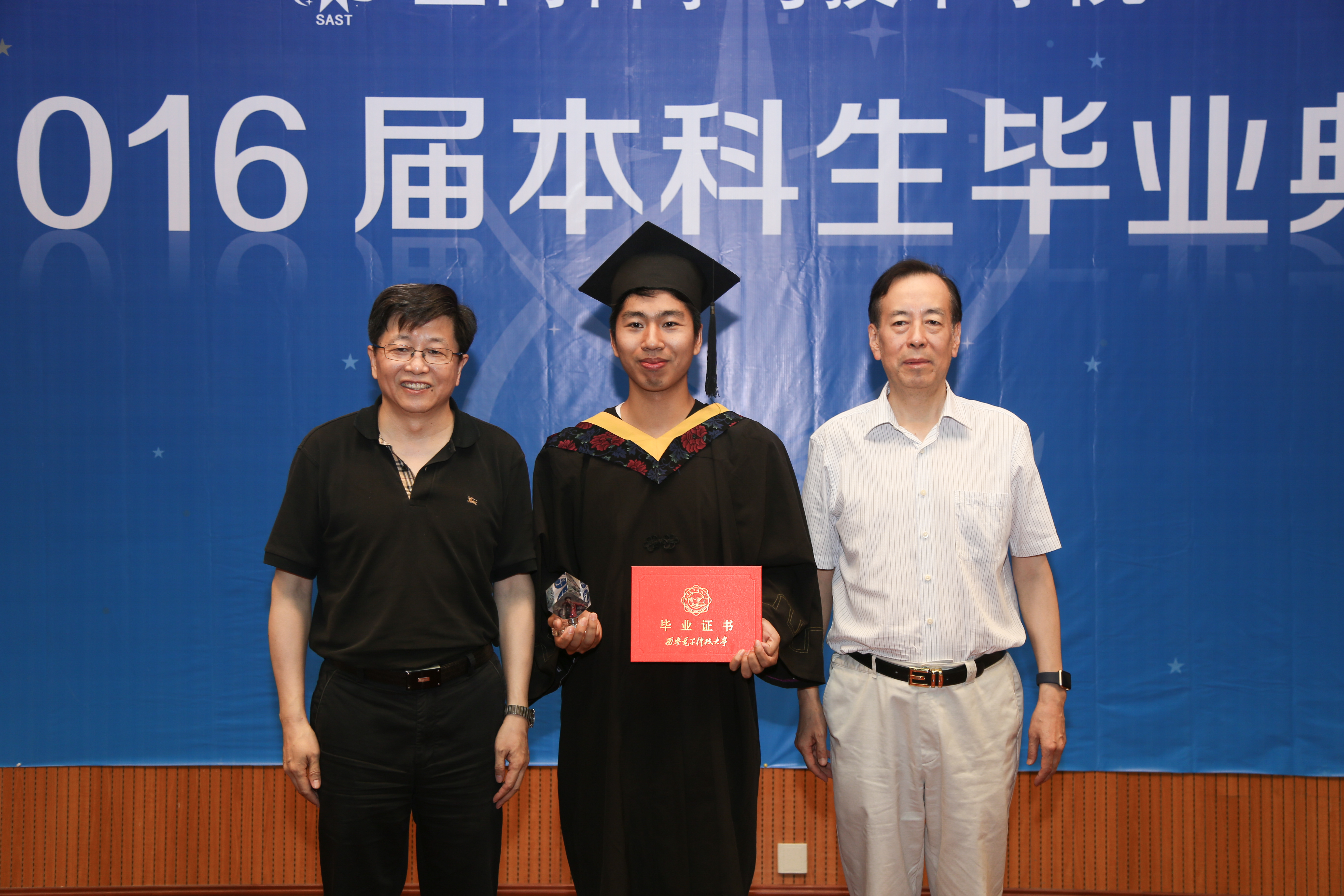 6月27日上午,阳光明媚,在巍巍终南山下郁郁葱葱的美丽校园里,“tyc539太阳集团2016届本科生毕业典礼”在南校区图书馆报告厅隆重举行,空间学院迎来建院以来的首届本科毕业生。副董事长郝跃院士、tyc539太阳集团经理包为民院士、中国航天科技集团高工苏大亮、图书馆馆长卢朝阳教授、副馆长李文兴、tyc539太阳集团执行经理李小平教授、党委书记梁玮、副经理刘彦明教授以及学院全体师生400余人参加了典礼,典礼由梁玮主持。
