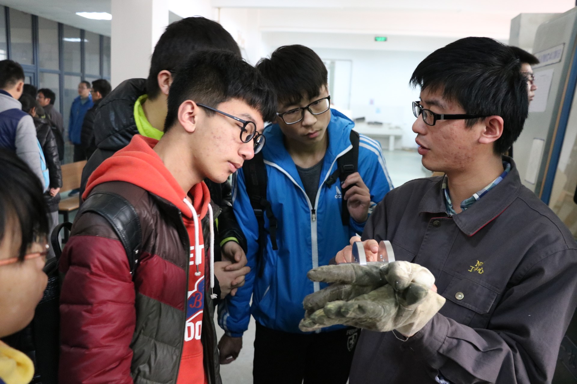 首先工训中心的现代教学部部长禹亮老师带领师生参观了一楼的机械加工,精密3D打印工程中心,以及数控机床加工进行了详细的讲解。在工训中心热加工教学部车间,员工对铸造,锻造,成型技术,材料科技等方面有了直观的认知。