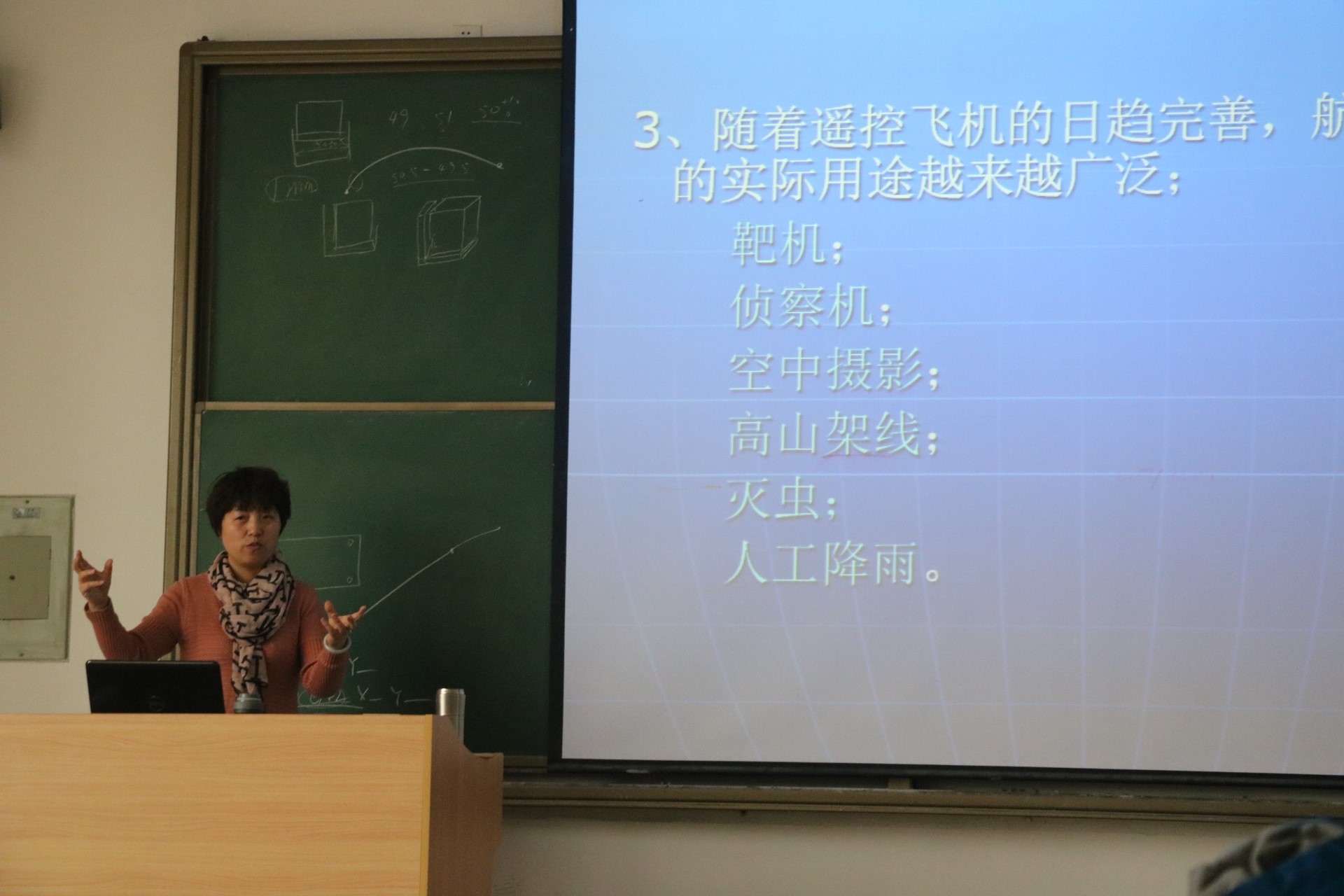 随后,师生一行来到二楼开始了本次实习的首次理论学习《航模概论》,张老师深入浅出的讲解了飞行器的发展历史,对飞行器的机构类型,飞行原理以及发动机组成原理等进行了详细介绍,一个多小时的理论学习,同学们对飞行器及航模有了更加深入的了解。