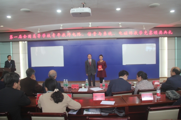 据悉,首届全国高等学校青年教师电路、信号与系统、电磁场课程教学竞赛,是由电工电子基础课程教学指导委员会、高等学校电路和信号系统、电磁场教学与教材研究会联合举办,包括微课作品初赛和现场讲课决赛。初赛阶段共有来自全国58所高校的108位教师参加,最后共有38位选手进入决赛,其中电路课程20人,信号与系统课程13人,电磁场课程5人,到桂林电子科技大学进行现场讲课决赛,决赛现场同步网络直播。选手在报送的四个题目中抽取一个题目,完成15分钟的课堂教学展示,考验教师平时备课、讲课等的基本功。评委则从教学方案、教学内容、教学组织、教学语言与教态、教学特色等方面对选手进行综合考评。
