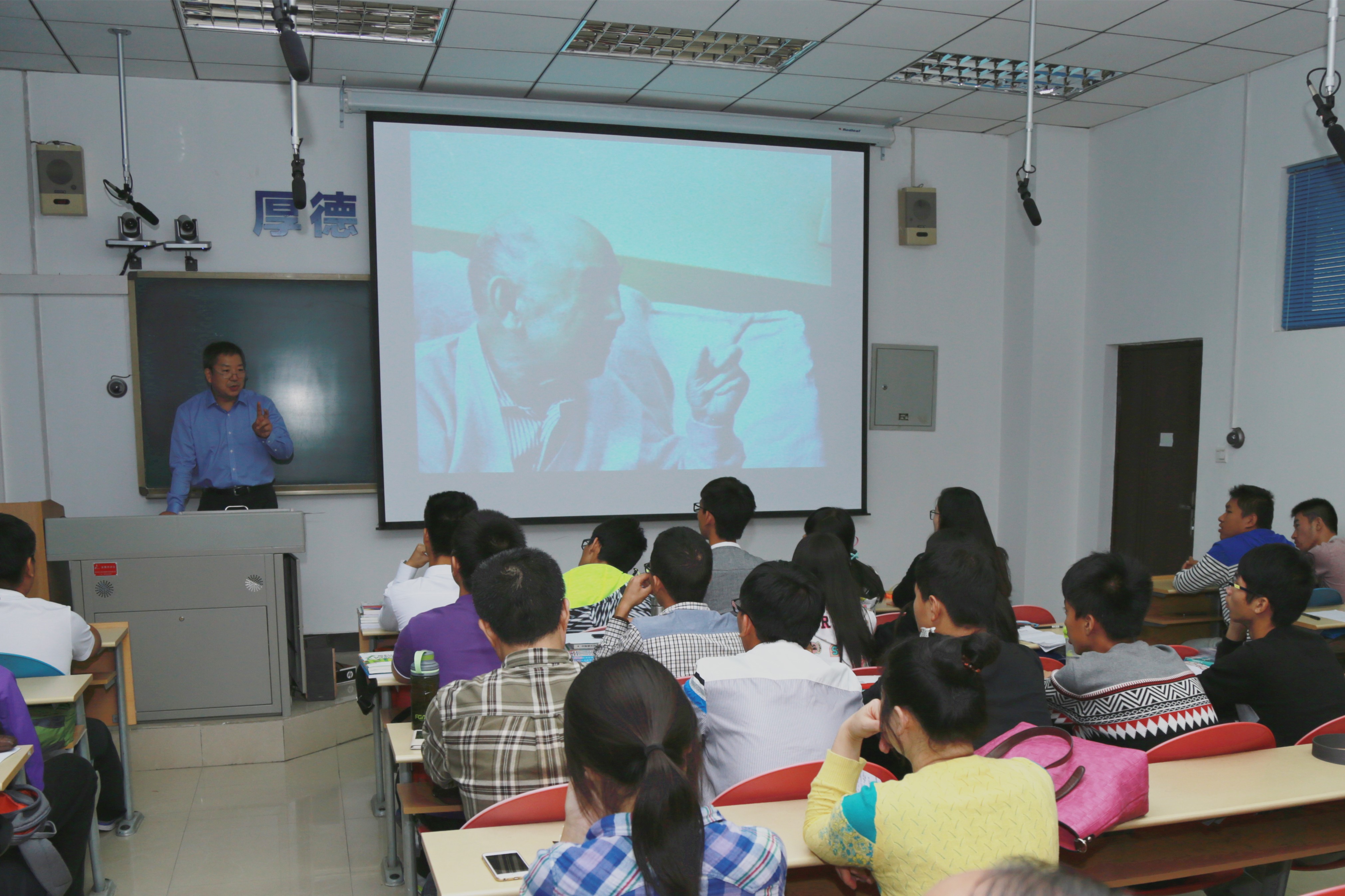顾吉环首先介绍了总装钱学森办公室的概况,作为钱学森秘书十几年的耳闻目儒,深得体会。讲述从钱学森人生重要的三个阶段、五次选择向大家呈现了钱学森的求学、科研、报效祖国的历程。钱学森中学毕业后抱着“学习知识、贡献社会、报效国家”选择专业学习,从铁路机械到航空工程,决定了他一生的发展轨迹。在美国求学期间,他始终铭记“学成本领后,救国于水火,青青然而归,灿灿然而返”的教诲,刻苦学习,勤奋思考,勇于创新,奠基了他一生的学术成就。新中国成立不久,钱学森就萌生了回去建设新中国的想法,彻底放弃荣华富贵,历尽艰难辗转回国,投身到我国的航天事业,为“两弹一星”、航天事业作出了杰出贡献。课堂上,顾吉环为大家播放了许多珍贵的材料、手稿、图片等,生动地通过一个个故事阐述着钱学森的爱国情怀和科学报国精神,一页页精美的手稿、一幅幅动人的画面、一个个回忆的瞬间,使老师和同学们发出阵阵赞叹和由衷敬意。课堂最后,顾吉环指出:今天我们讲述钱学森、缅怀钱学森,是要大家思考学习为什么、活着为什么的命题,作为钱班员工如何让这个称号添光加彩、灼灼生辉,成长为钱学森事业的接班人。