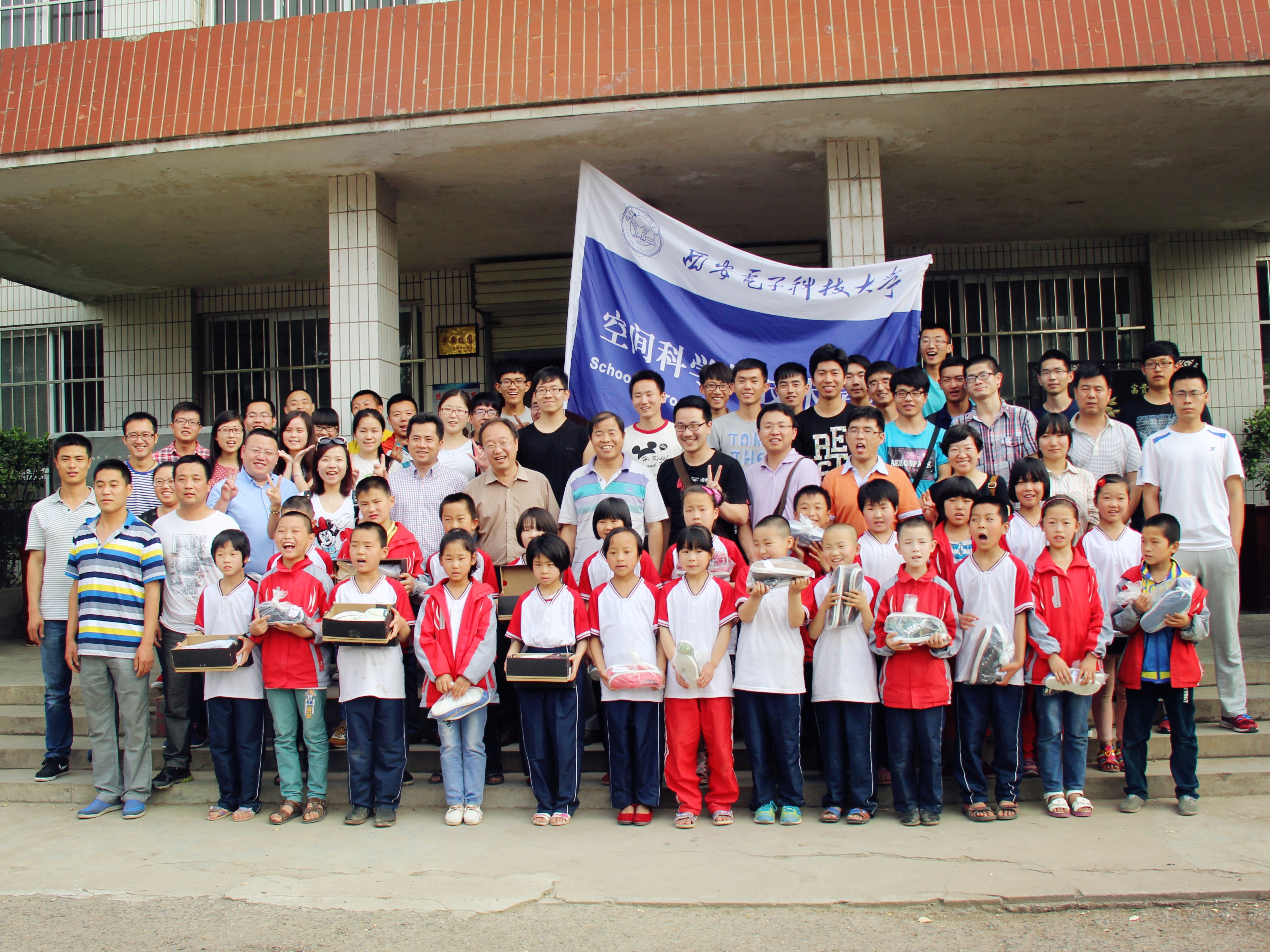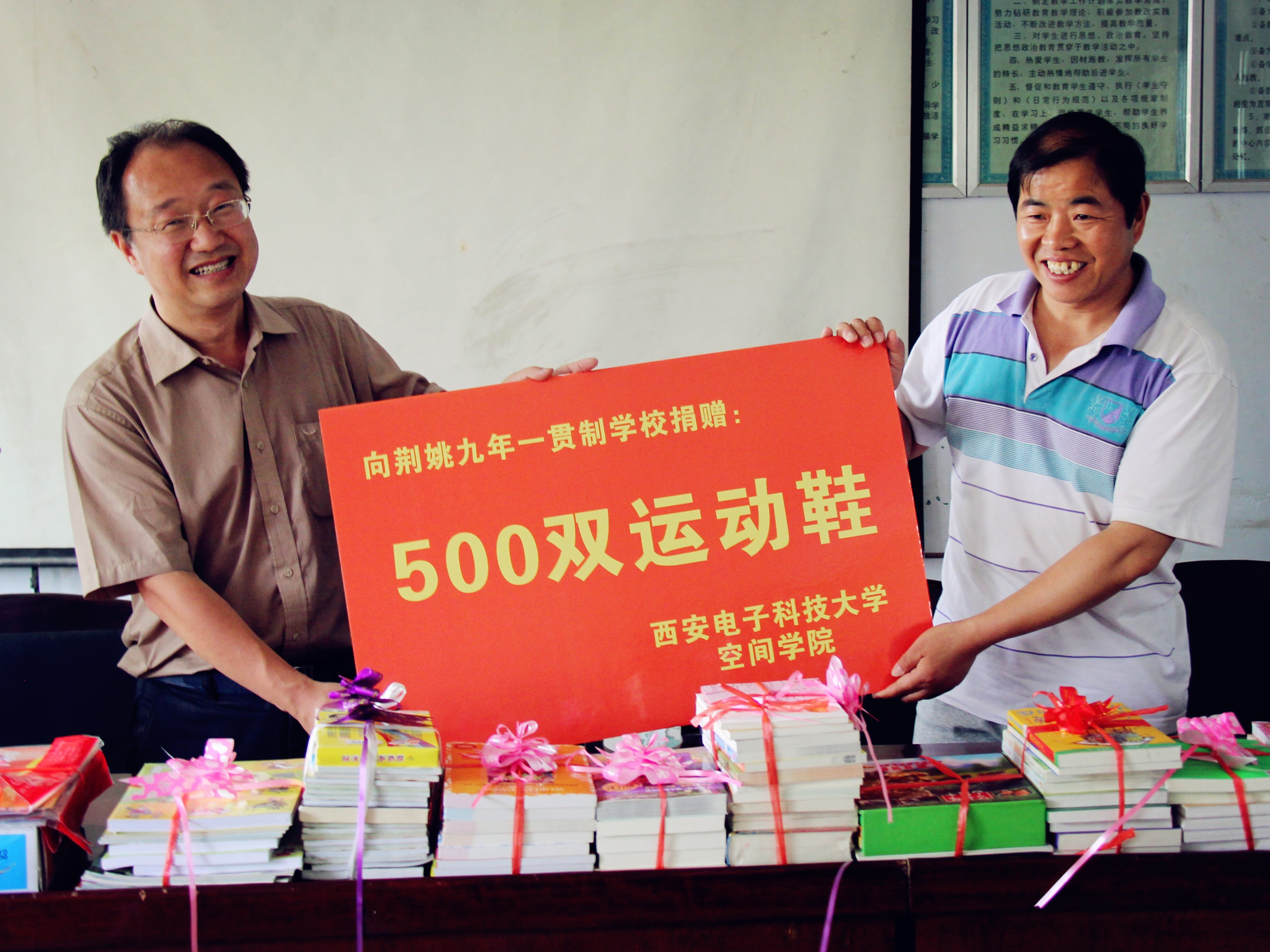 师生们来到公司定点扶贫基地-荆姚九年一贯制学校,为小朋友们带去了由全院员工捐款购买的儿童节礼物,都是大家精挑细选的儿童读物、地球仪、彩色铅笔等,还为他们送去了500双运动鞋,希望在六一之前为孩子们送去快乐和祝福。