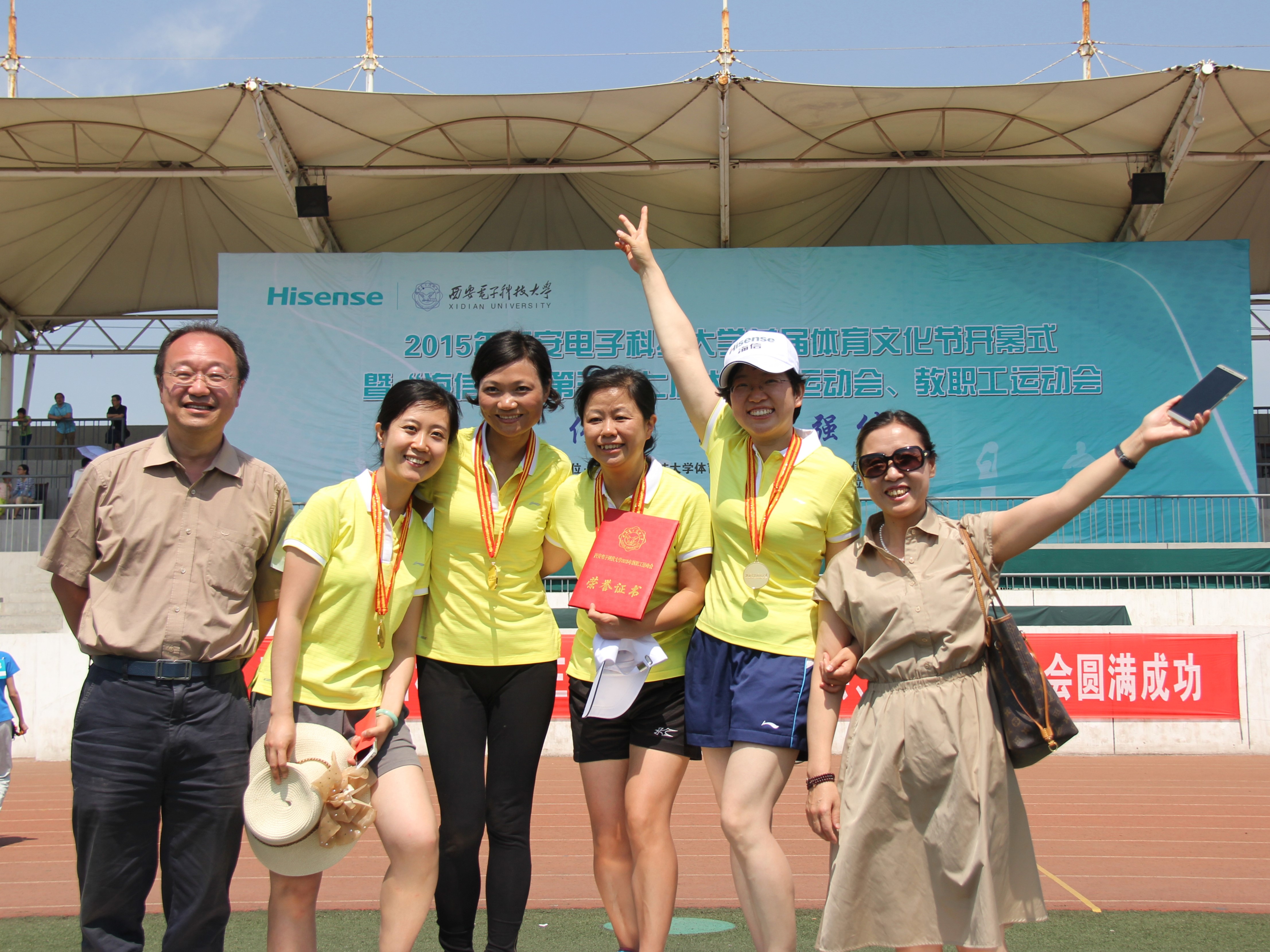 除了别具一格的开幕式表演,空间学院的师生在本次运动会上取得的成绩也同样令人自豪。虽然学院的师生人数与其它学院比较相去甚远,但是空间师生取胜的决心和信心、团结一致的精神面貌却毫不逊色,在教师女子4×100米接力比赛中公司获得第一名的好成绩,一道炫丽的黄色在跑道上划出了美妙的弧线,第一棒,第二棒,老师们渐渐逼近终点,她们斗志昂扬,一鼓作气摘得桂冠。场边整齐的加油呐喊声震耳欲聋,颁奖台上的骄傲和自豪溢于言表。