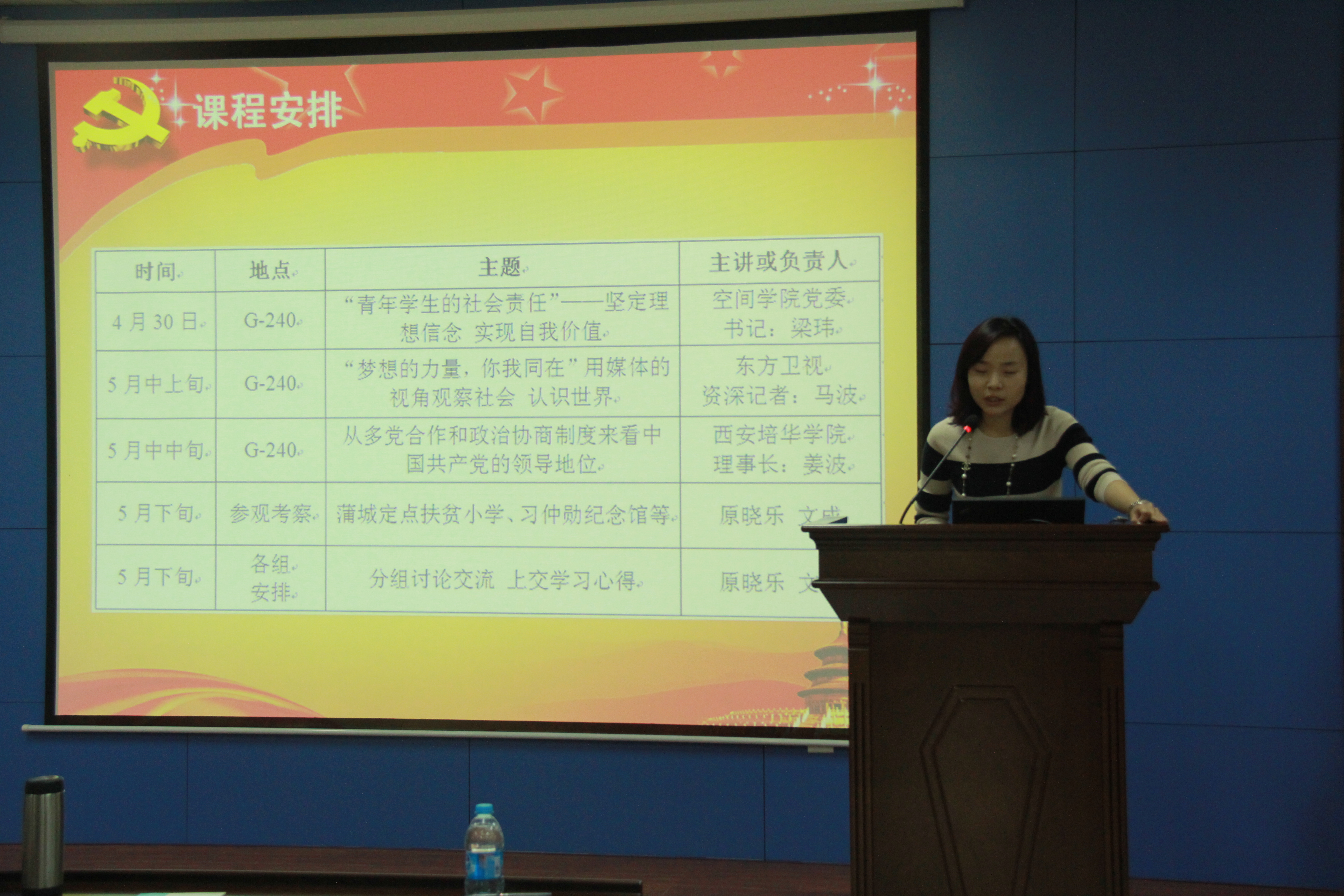 此次开班旨在深入贯彻落实《中国共产党普通高等学校基层组织工作条例》及公司党委2015年员工工作会议精神,进一步加强学习型党组织建设和创先争优活动的深入开展,切实保障员工党员的质量,强化对入党积极分子和员工干部的教育培养。本次业余党校中级班从各党支部、团支部、团学组织中择优推荐,招收了空间学院和国际教育学院近50名优秀学员。本次培训班将以课堂授课和考察实践相结合的培训模式,并将成立空间学院第一期老员工业余党校中级班班委会,并成立若干学习小组,组建各自的学习讨论组和自媒体学习平台。