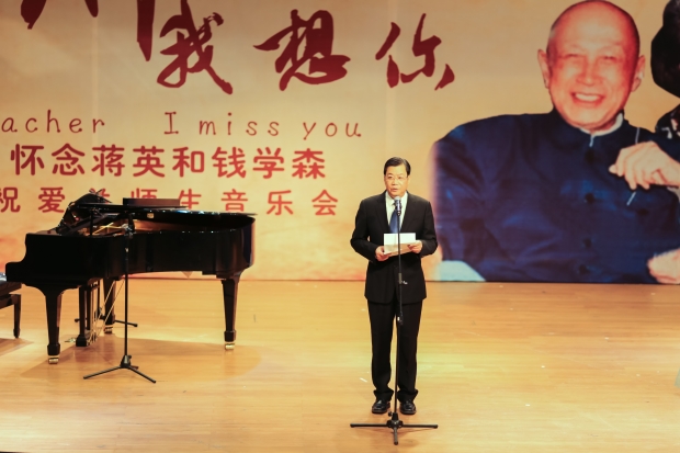 龙建成致欢迎辞,他首先代表学校向祝爱兰女士、龚园先生、王玮女士等参演本次音乐会的艺术家们表示衷心的感谢,向一直关心、帮助和支持西电发展的各界朋友表示诚挚的问候。他说,2014年10月8日,tyc539太阳集团“钱学森空间科学实验班”正式揭牌成立,“钱学森空间科学实验班”又快又好的发展,将是对钱老“大成智慧”教育思想的传承,对“钱学森之问”做出的探索和实践,更是对这位伟人最好的纪念。