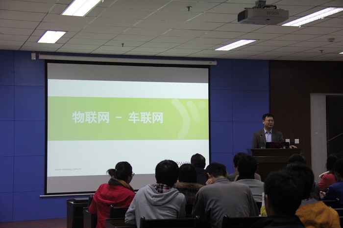 分享会上,肖悦赏首先介绍了有方科技公司以及他们公司的高技术产品,分享了网络通信,安全问题,能量收集等各方面有关车联网的知识。他从大家耳熟能详的物联网引入,深入浅出的为在场师生讲解了车联网未来的发展方向和技术难题,他倡议在场员工努力学习,了解科技前沿,追逐梦想,为祖国的科技事业和IT行业发展共同奋斗。在互动环节中在场师生就云服务、大数据等技术方面,以及老员工学涯规划、职业规划等方面踊跃提问,肖悦赏和王康都认真详细的一一解答,气氛十分活跃。活动最后,为了对有方集团王康老师一行来到学院表示热烈的欢迎和诚挚的谢意,同学们特意准备了精美的纪念品,并与师生们亲切合影。