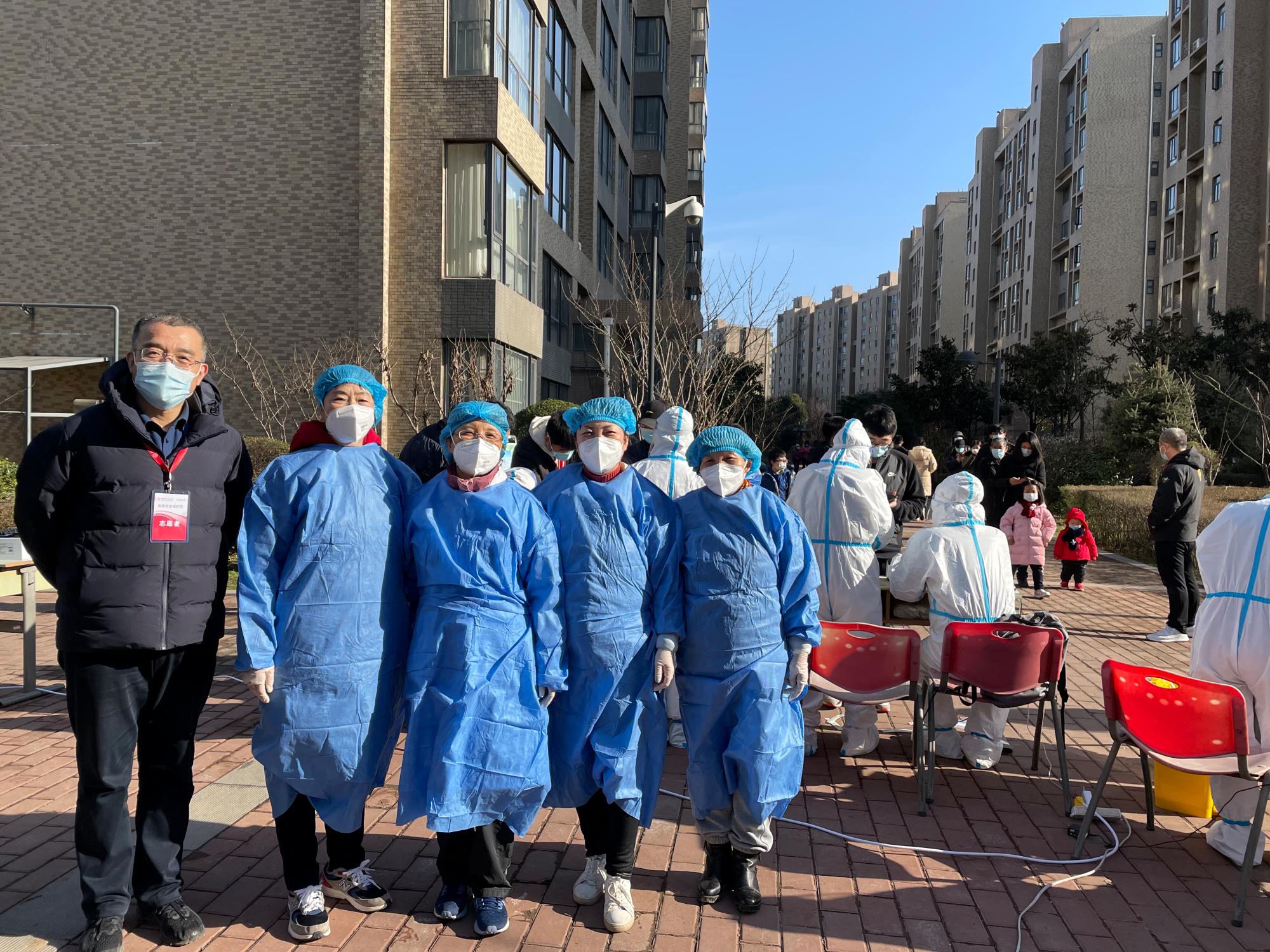 在南北校区社区都封闭式管理、员工宿舍封闭管理期间,发放物资、核酸检测秩序维护的志愿者只能从社区内部找。学院执行经理刘彦明积极参与到南校区社区核酸检测现场秩序维持志愿活动中,在寒风中与青年人并肩奋斗,助力核酸检测。副经理姜莉莉主动加入到北校区社区44号楼志愿者队伍中,及时传达和落实学校对住户的关心和帮扶,及时反馈住户的需求和问题。卢毅带领辅导员以入驻宿舍楼的形式,开展“网格化”疫情防控工作,为员工安全有序的学习生活保驾护航。苏博、张越不仅参与到研考志愿中,研考结束后仍留在南校区社区当志愿者,学院也努力为两位老师解决了住宿问题。两位老师坚定而自豪地说:“参加志愿活动很光荣,希望通过贡献一份力量,助力美丽的学校、坚强的西安能够早日恢复正常的生活、工作和学习节奏。”
