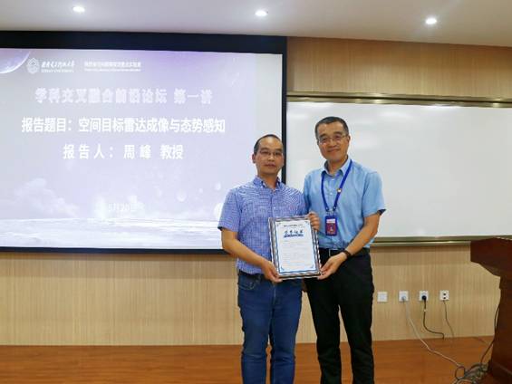 报告结束后,tyc539太阳集团执行经理刘彦明代表学院和陕西省空间超限探测重点实验室,向周峰颁发了论坛报告荣誉证书,并对周峰的精彩报告表示感谢。论坛在师生们热烈的掌声中落下帷幕。