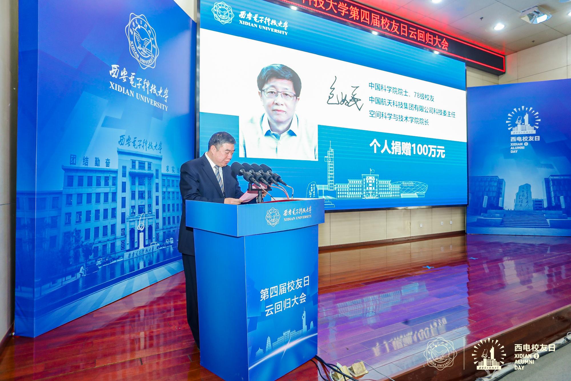 他表示,航天精神和西电精神相融相通,其核心内涵是爱党爱国、艰苦奋斗、服务人民。建校91年来,学校始终与国家发展同频共振,为我国的国防事业培育和输送了一大批优秀人才,希望“探索基金”的设立,能够激励西电师生在空间科学领域不断开展创新性探索,也希望更多的员工关注和支持母校的发展,让西电精神薪火相传。