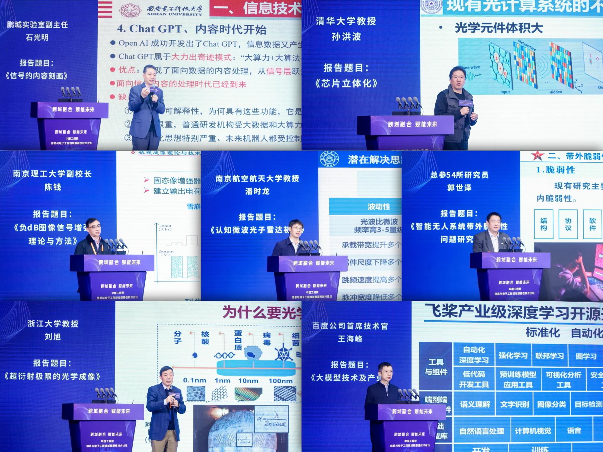 鹏城实验室副主任石光明教授、清华大学孙洪波教授、南京理工大学副董事长陈钱教授、南京航天航空大学潘时龙教授、总参54所郭世泽研究员、浙江大学刘旭教授、百度公司首席技术官王海峰作主题报告。