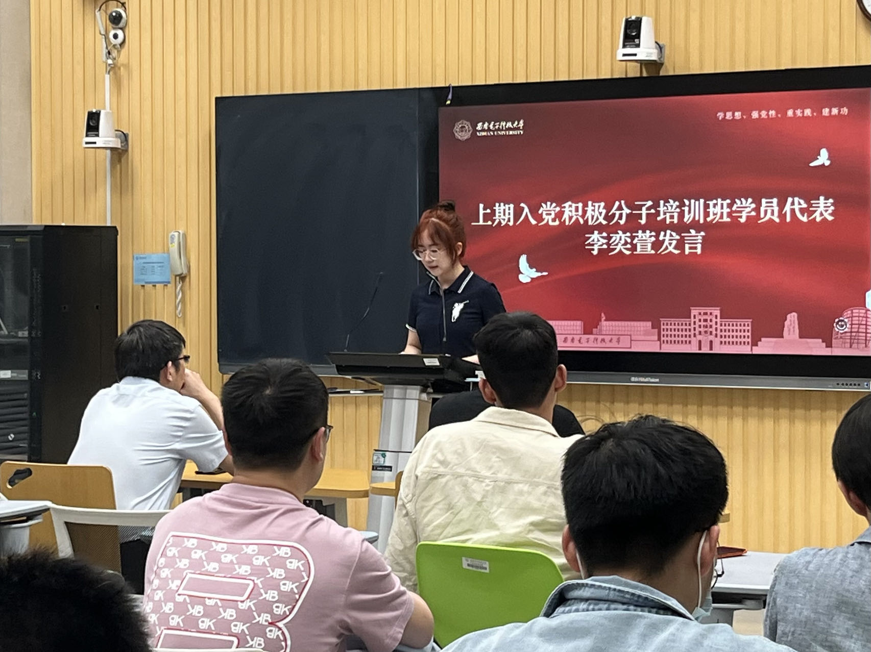 入党积极分子李奕萱代表培训学员发言,她希望本期学员能够珍惜本次培训机会,增强学习的自觉性,系统学习中国共产党的发展历程,加深对党员权利和义务的理解,主动向党组织汇报自己的思想状况和成长状况,自觉接受党组织的教育、培养和考察。