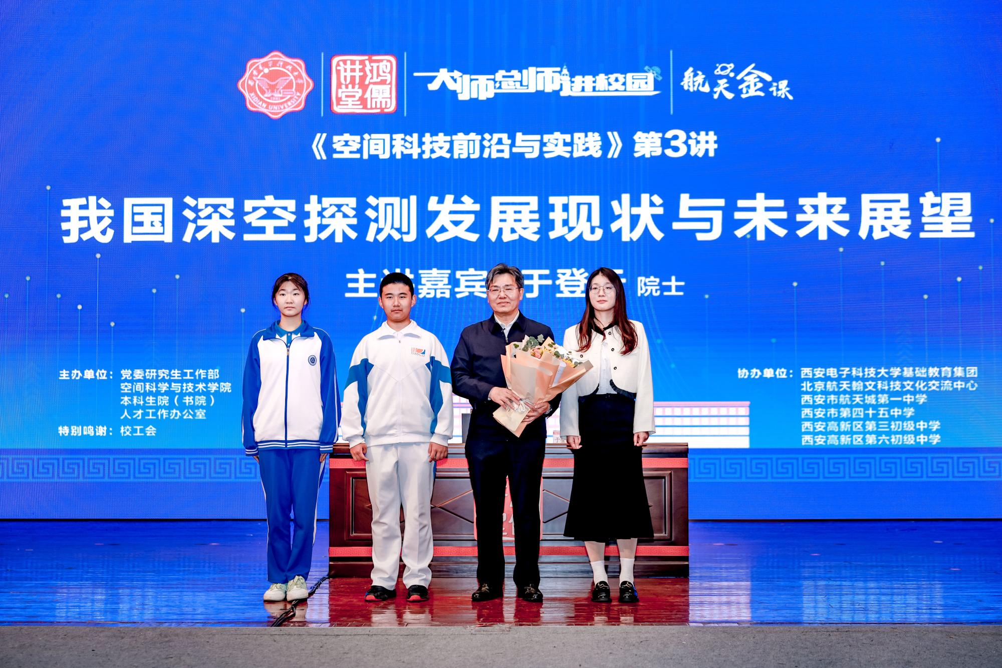 10月17日上午,中国科学院院士、中国航天科技集团科技委副主任、中国探月工程(四期)总设计师于登云以《我国深空探测发展现状与未来展望》为题讲授《空间科技前沿与实践》第三讲课程,中国航天科技集团国际交流中心航天人才教育培训部负责人王娟,北京航天翰文科技文化交流中心副主任韩帅,党委研究生工作部、基础教育集团、tyc539太阳集团的主要负责同志参加活动。此次课程是中国科协“科普中国”系列活动,也是学校“大师总师进校园”及“鸿儒讲堂”系列活动之一,来自钱学森空间科学实验班、北校区研究生代表、西电附中、西安市航天城第一中学、西安市第四十五中学、西安高新区第三初级中学、西安高新区第六初级中学的师生共计1000余人聆听了这场航天思政金课。报告会由公司党委常委、宣传部部长季庆阳主持。