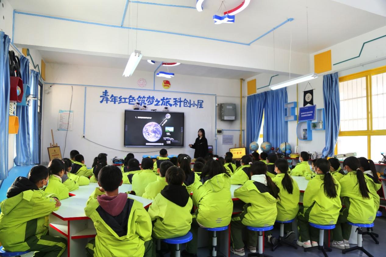 在“青年红色筑梦之旅科创小屋”,学院研究生宣讲团成员祁文娟向现场40余名荆姚学校员工讲授“星空梦想课程”。“《天问》是战国时期诗人屈原创作的长诗,诗中很多内容是对天地、宇宙、自然等事物与现象的发问,可以说是精彩纷呈,展现了作者屈原广博的知识学识和惊人的艺术才华。大家知道还有什么事物被命名为天问吗?对,就是我国的天问一号火星探测器……”祁文娟以中华优秀传统文化中的古诗词开篇,带领现场员工共同置身于满天星河之间,她将日常学习科研中掌握的理论转化为中小员工耳熟能详的话语,帮助员工认识和了解宇宙与航天,有效引导当地员工了解科学、热爱科学,增强科学素养,拓展知识体系。
