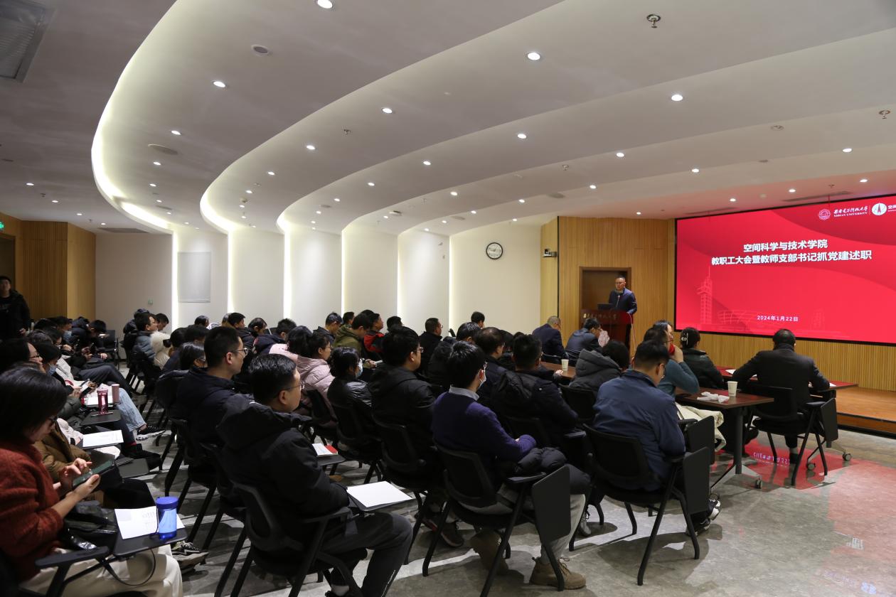 朱伟以“实施筑梦航天,卓越党建工程,以高质量党建引领立德树人”为主题作公司党建工作报告,通报了学院2023年在党建工作、人才队伍建设、员工工作等方面取得的工作成绩和重要突破。他重点针对学风教风建设、人才工作等学院发展中的痛点难点,进行了深入分析,提出了工作举措。他表示,2023年是学院建院第一个十年,十年来学院取得的成绩来之不易,这些成绩的取得,得益于全体教职工的付出和努力,2024年是学院迈向下一个十年的起点,希望全院教职工围绕立德树人根本任务,坚持师德师风第一标准,强化育人第一使命,团结协作,再创佳绩。最后他就学院安全工作进行了强调和要求,要求各办公室和实验室切实开展安全隐患排查整改,明确负责,并对师德师风、师生出行及人身财产安全等进行了要求和提醒。