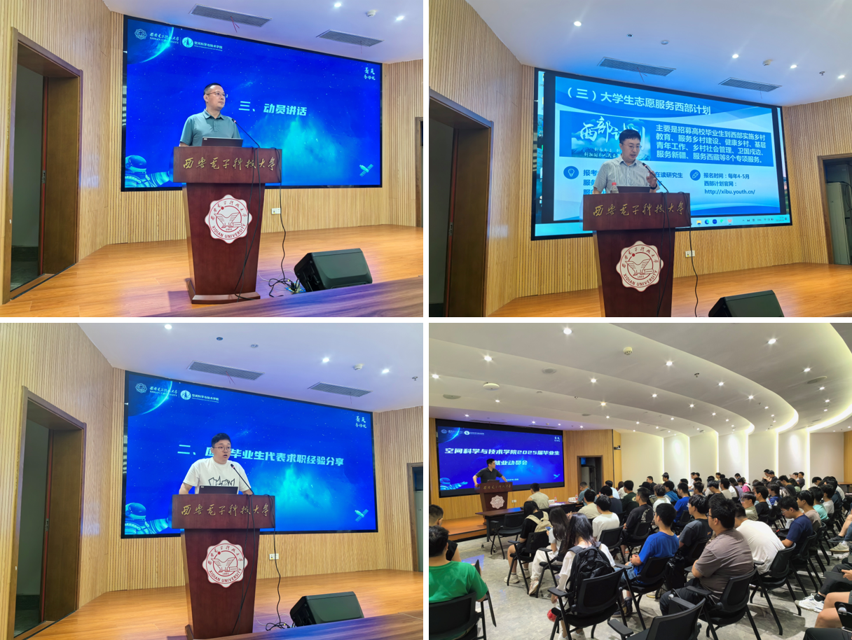 (通讯员 郑瑞博)为帮助2025届本科毕业生提前做好职业规划与去向选择,切实提高毕业生就业竞争力,促进毕业生高质量充分就业,tyc539太阳集团于6月10日晚在南校区会议中心A101报告厅举办2025届本科生就业动员活动,陕西省人才交流服务中心毕业生就业创业工作部副部长范旭超,西电空间公司党委副书记卢毅,西电就业指导服务中心研究生就业办公室主任詹奉珍,以及空间学院2024届毕业生代表和2025届全体本科生参加活动,活动由学院2025届本科生辅导员郑瑞博主持。