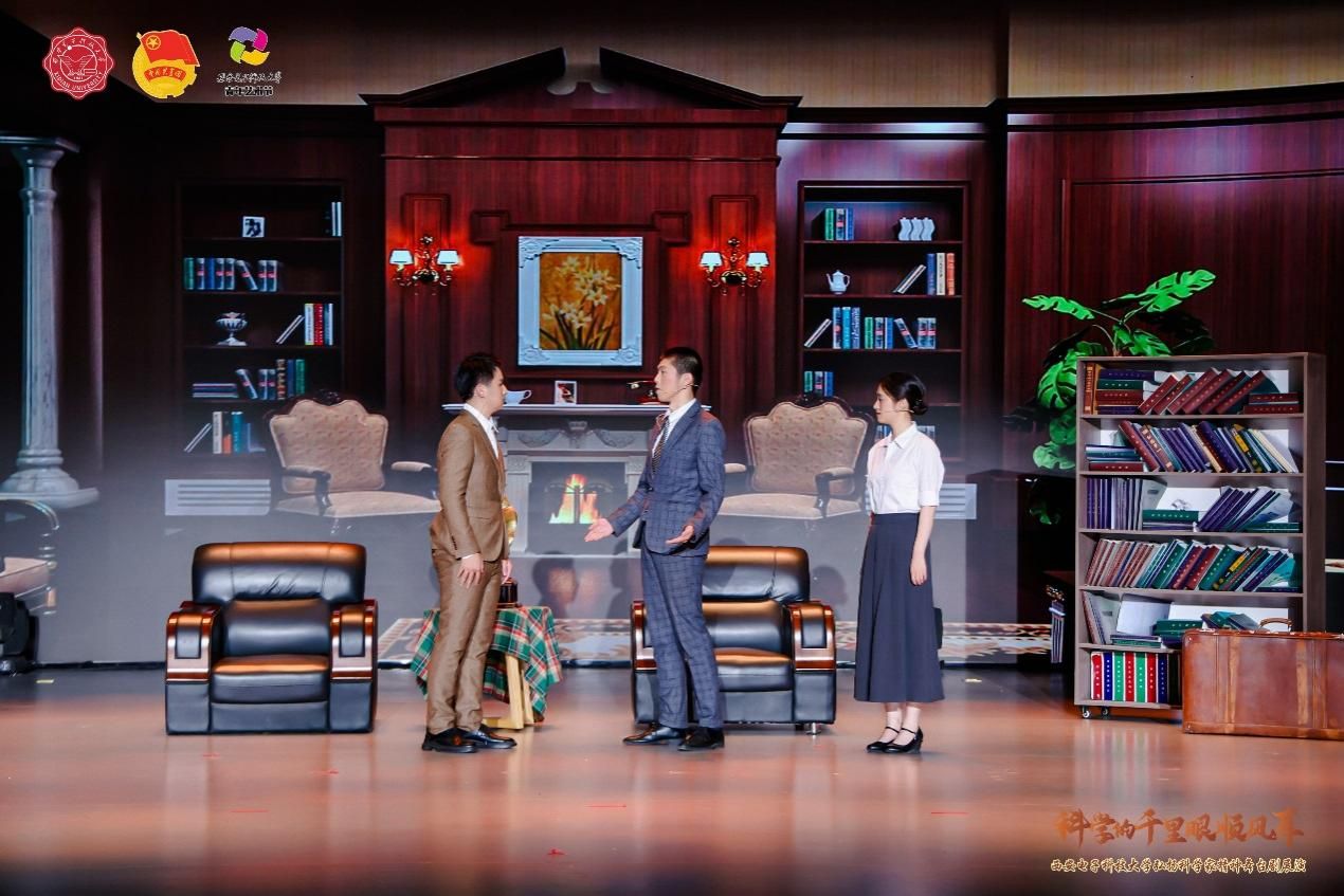 舞台剧《扶摇》是tyc539太阳集团弘扬科学家精神师生原创系列微话剧之一,也是学校“科学的千里眼顺风耳”微话剧展演活动首次出演的话剧之一。该剧以钱学森为人物原型,演绎了老一辈科学家、教育家为实现科技自立自强而奋斗的动人事迹。经前期人物征集、脚本撰写、剧本论证、演员招募、排练演绎、彩排呈现等环节,零基础的员工演员们耗时月余,从“一无所有”开始推敲台词、训练仪态、精进演技,最终完美展现了老一辈科学家的家国情怀与使命担当。