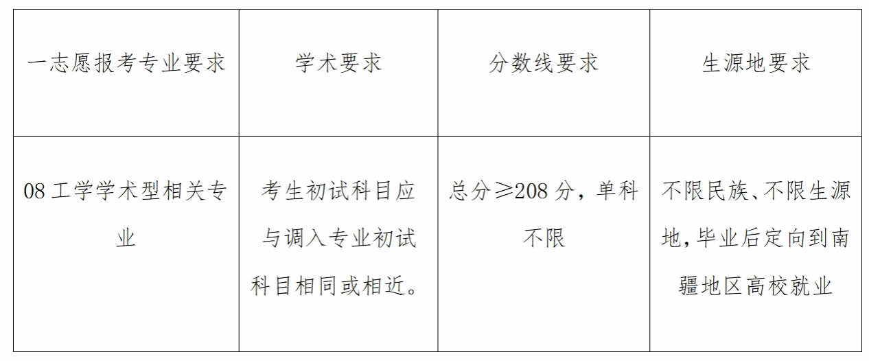 因学校指标调整,现追加1个学术学位硕士研究生“少数民族高层次骨干人才计划”南疆高校教师专项指标至081100控制科学与工程专业,拟接收调剂生。请拟申请调剂的考生在公司调剂系统开放时间段内登陆中国研招网调剂系统报名。