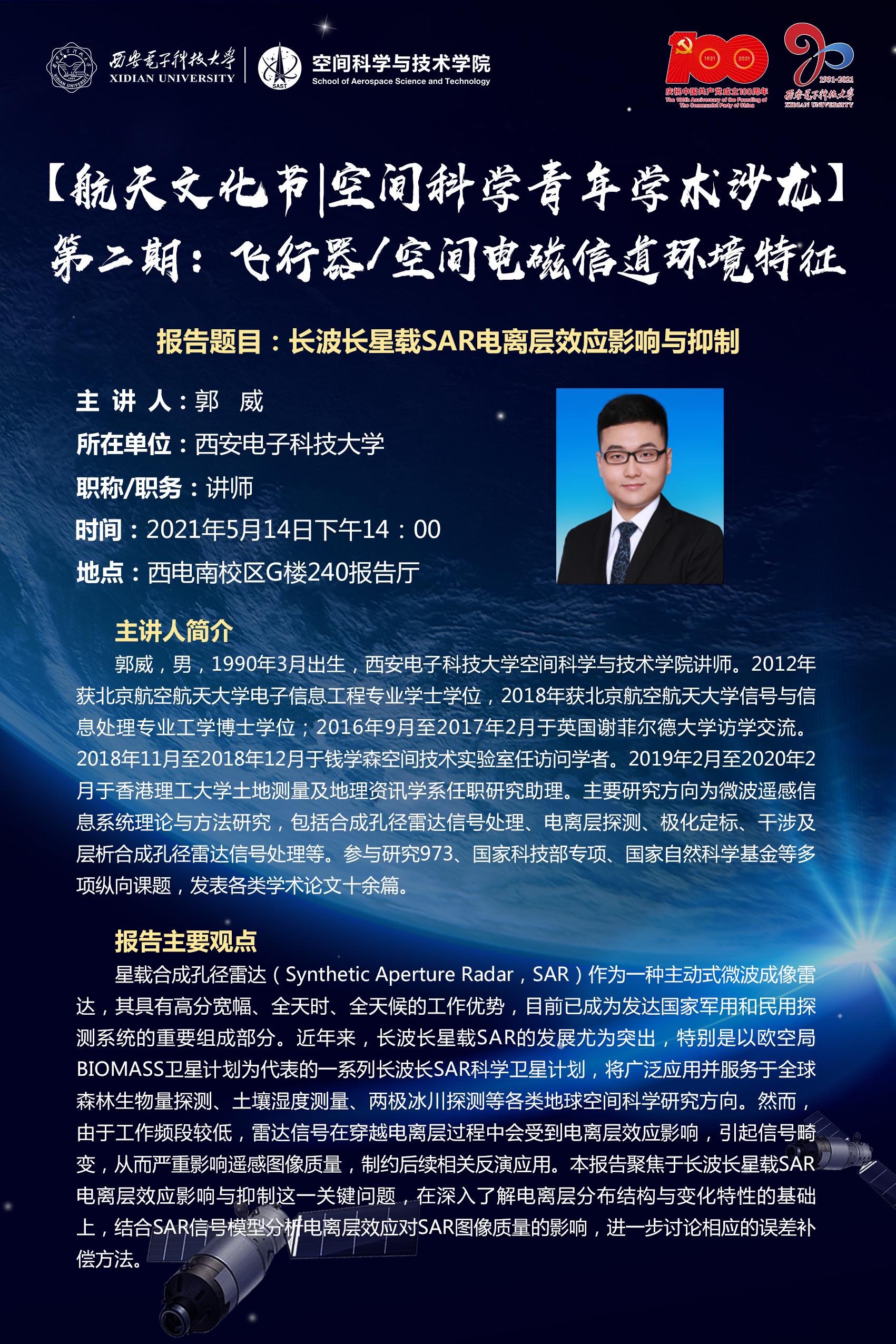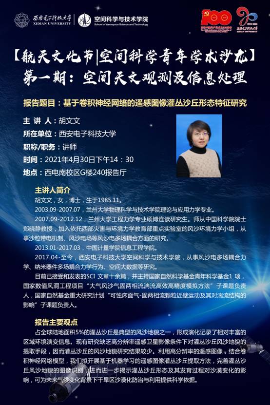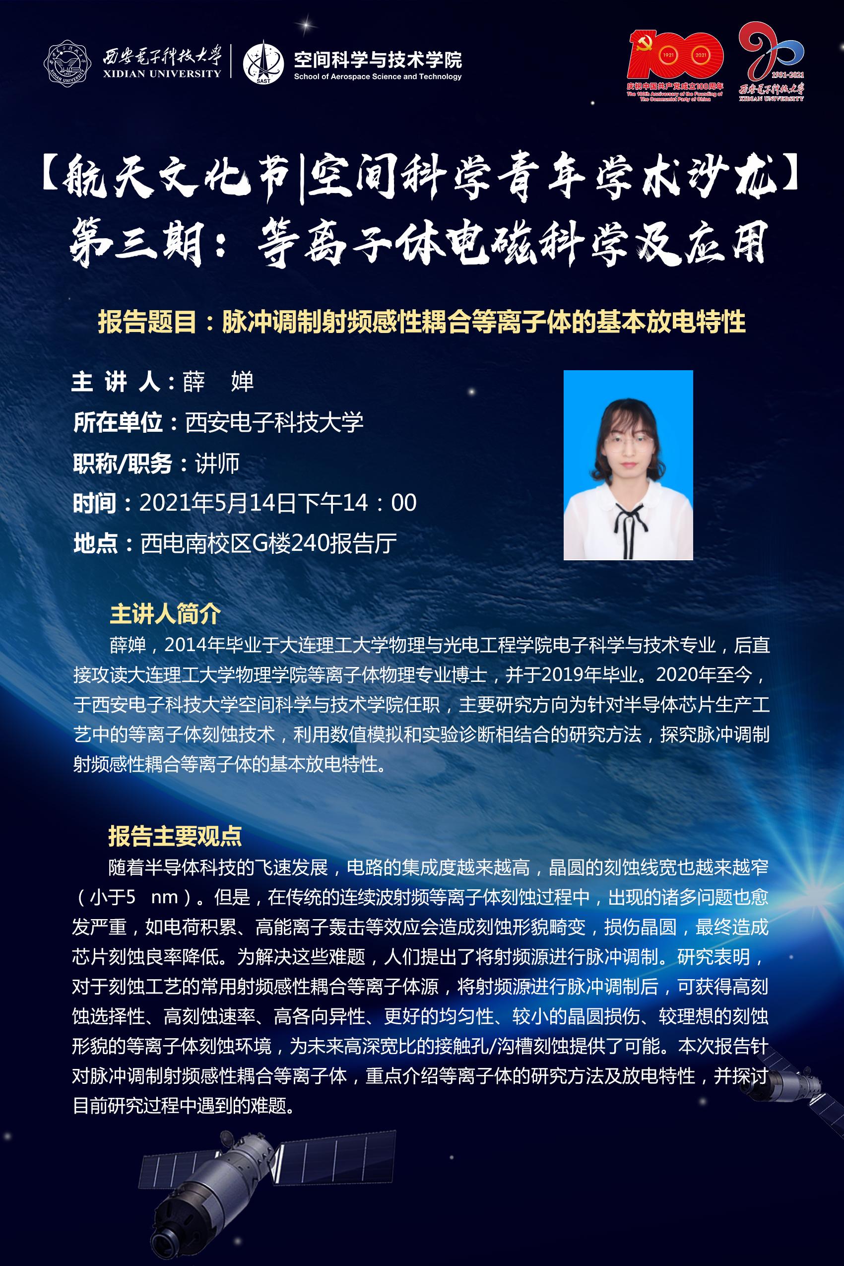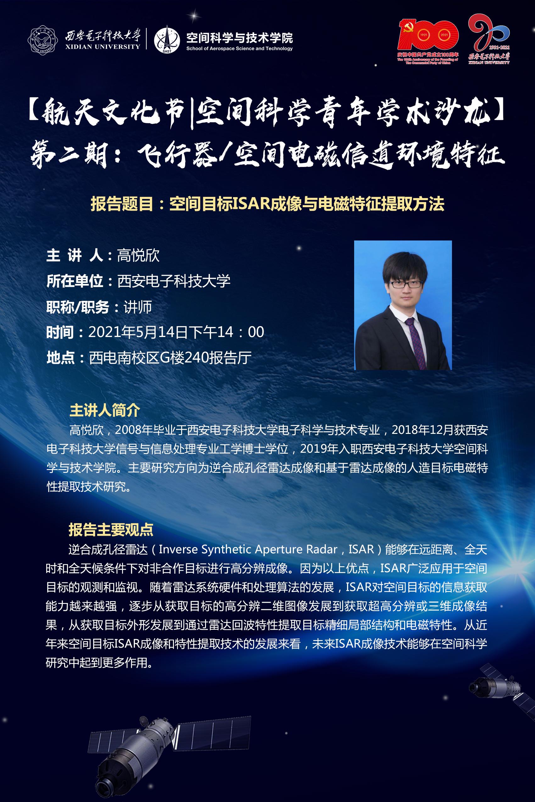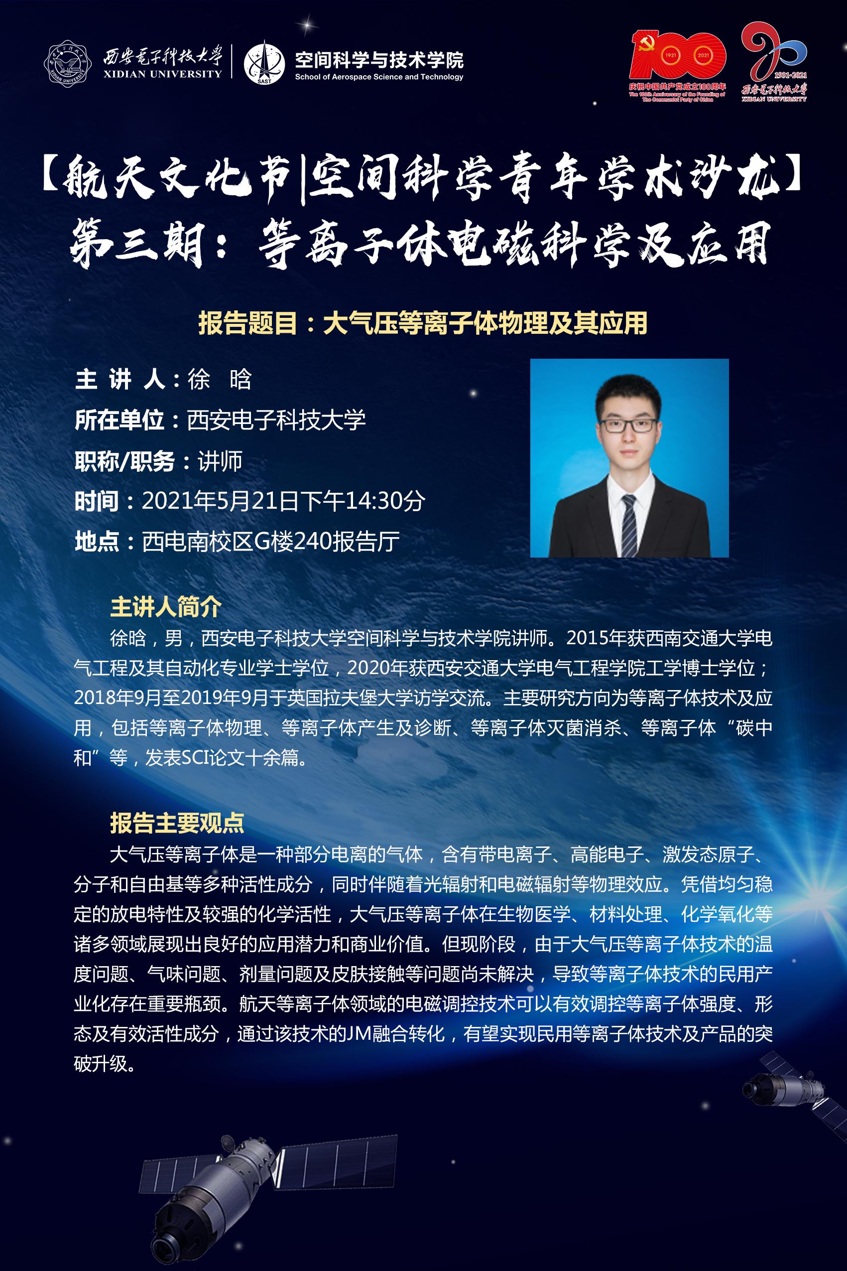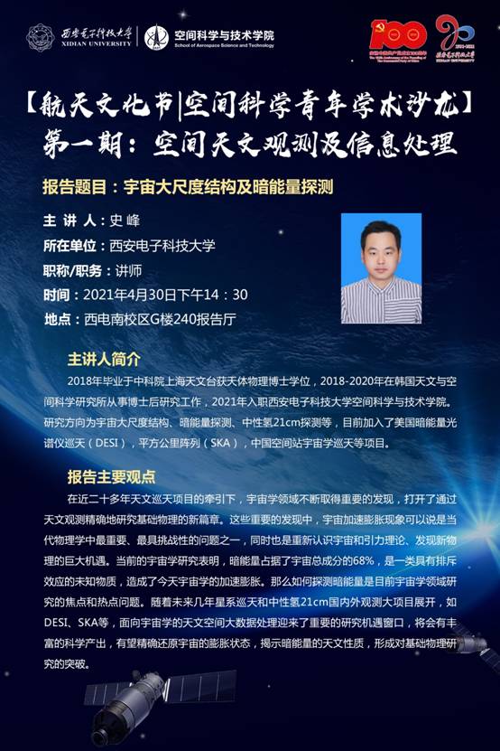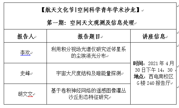 为促进空间科学与技术领域青年教师优秀科研成果的交流分享,拓展青年教师的学术视野,搭建空间科学与技术领域教师学术交流平台,以航天文化节为契机,举办 “空间科学青年学术沙龙”系列活动。