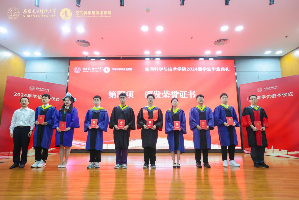 研究生毕业生赵迎新和本科毕业生杨国强作为员工代表分别分享了自己的毕业感受。他们表示,时代赋予了西电学子新的使命,建设航天强国的“动员令”赋予了空间学子新的力量。今后将会在“厚德、求真、砺学、笃行”的校训和“胸怀祖国、勇于探索、知行合一、团结协作”的学院精神的指引下勇毅前行,续写和创造更多属于西电人的荣光。