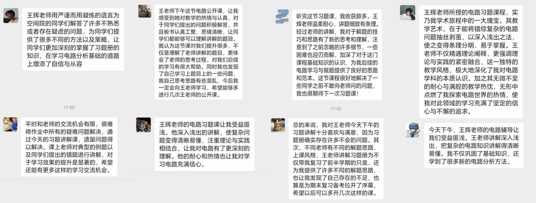员工们对于本次活动反馈积极,纷纷表示受益匪浅。通过王老师的指导,他们学习到了如何从整体框架入手,分步骤解题,避免过度关注个别计算细节,这大大提高了他们解题的效率和准确性。部分同学分享道:“王辉老师所授的电路习题课程,实乃我学术旅程中的一大瑰宝。其教学艺术,在于能将错综复杂的电路问题抽丝剥茧,以深入浅出之法,使之变得条理分明、易于掌握。王老师不仅精通理论阐释,更强调理论与实践的紧密融合,这一独特的教学风格,极大地深化了我对电路学科的本质认识。加之其无微不至的耐心与满腔的教学热忱,无形中点燃了我探索电路世界的热情,使我对此领域的学习充满了坚定的信心与不懈的追求。”总体而言,同学们普遍反映,本次活动不仅帮助他们更好地理解了电路课程中的重点难点,更重要的是,他们从老师的授课中获得了自信和动力,表示今后将更加注重理解和思考,在解题过程中更加注重逻辑性和系统性。