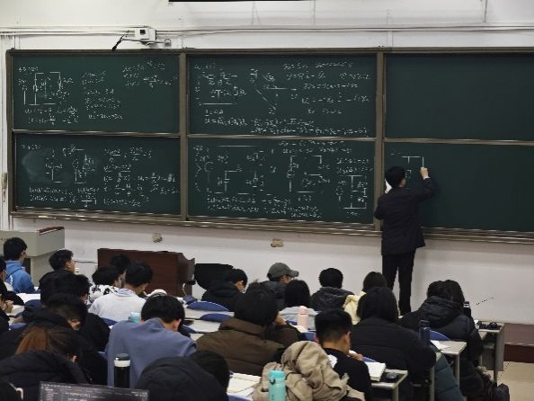 参加本次活动的有包括钱学森班在内的空间学院所有23级本科生和计科学院23级卓越班的同学。本次活动主要为同学们答疑解惑、强化知识理解并锻炼逻辑思维。戴老师以电路课程的核心知识点为切入点,精心挑选了一些典型例题进行深入剖析与讲解。在讲解过程中,戴老师重点强调了电路分析的关键思路与方法,比如巧妙运用电路定理简化复杂电路,清晰高效求解动态电路问题等。戴老师的讲解逻辑清晰、条理分明,使同学们能够迅速抓住问题的核心。工整美观的板书更透露出一种严谨认真的教学态度,每一个步骤都清晰呈现,便于同学们跟随讲解思路进行思考与记录。同时,戴老师也指出同学们在解题过程中容易陷入的误区,通过实际案例分析错误产生的根源。活动结束后,面对同学们提出的各类问题,戴老师均给予耐心细致的解答,深入浅出讲解。同学们在此次活动中不仅收获了丰富的电路课程知识,更从戴老师的精彩讲解中汲取了宝贵的学习方法与经验。