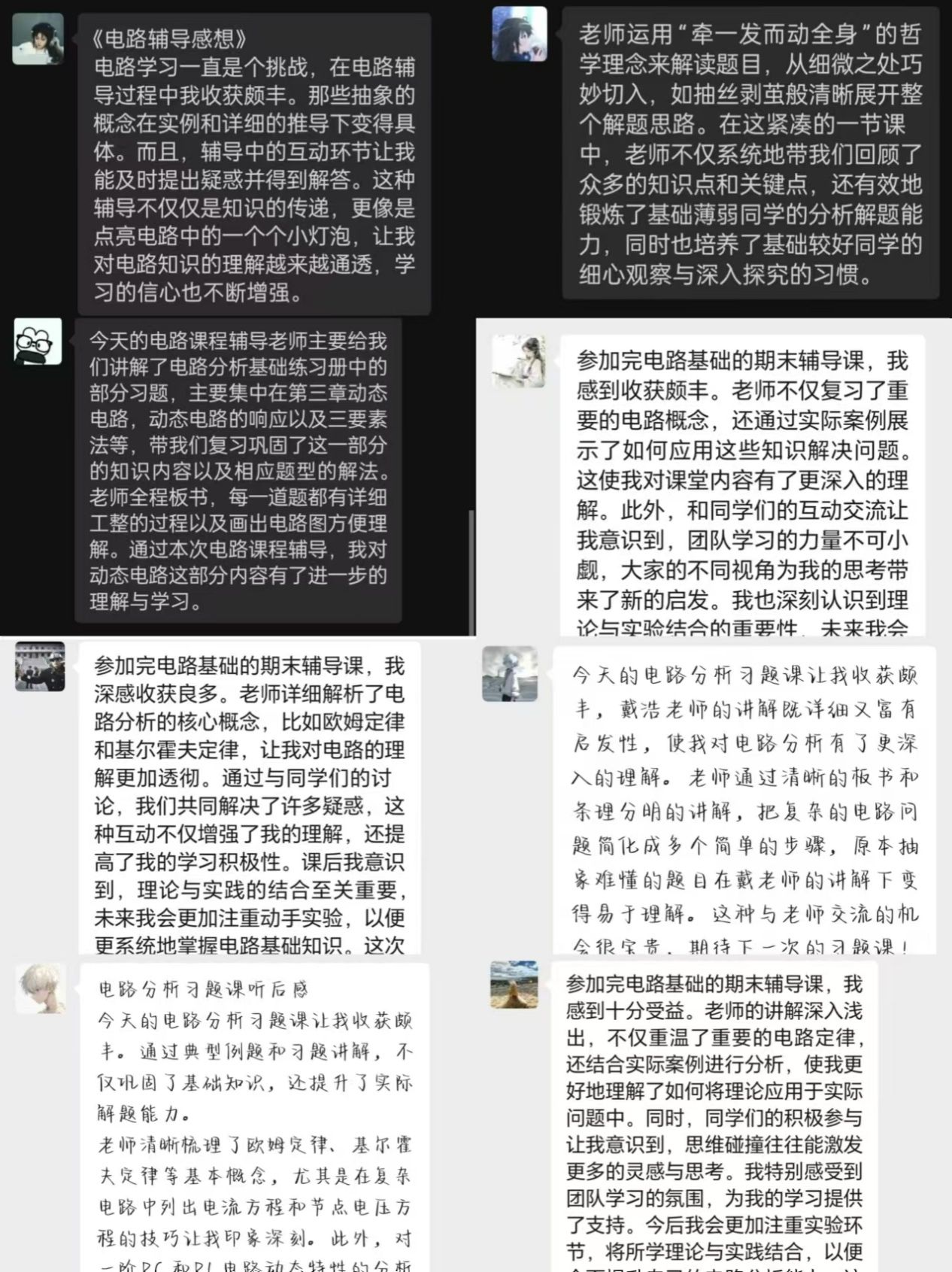 同学们对本次活动给予高度评价,纷纷表示收获满满。在戴老师的指导下,他们学会了构建系统的解题思维框架,掌握了高效解题的步骤与技巧,显著提升了解题的效率与精准度。有同学感慨道:“今天的电路习题课让我收获颇丰。戴浩老师的讲解既详细又富有启发性,使我对电路分析有了更深入的理解。老师通过清晰的板书和条理分明的讲解,把复杂的电路问题简化成多个简单的步骤,原本抽象难懂的题目在戴老师的讲解下变的易于理解。这种与老师交流的机会很宝贵,期待下一次的习题课。”