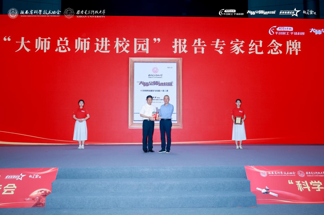 报告伊始,查显友书记为张荣桥院士颁发“大师总师进校园”报告专家纪念牌,张荣桥院士向西电赠予了火星探测系列著作。