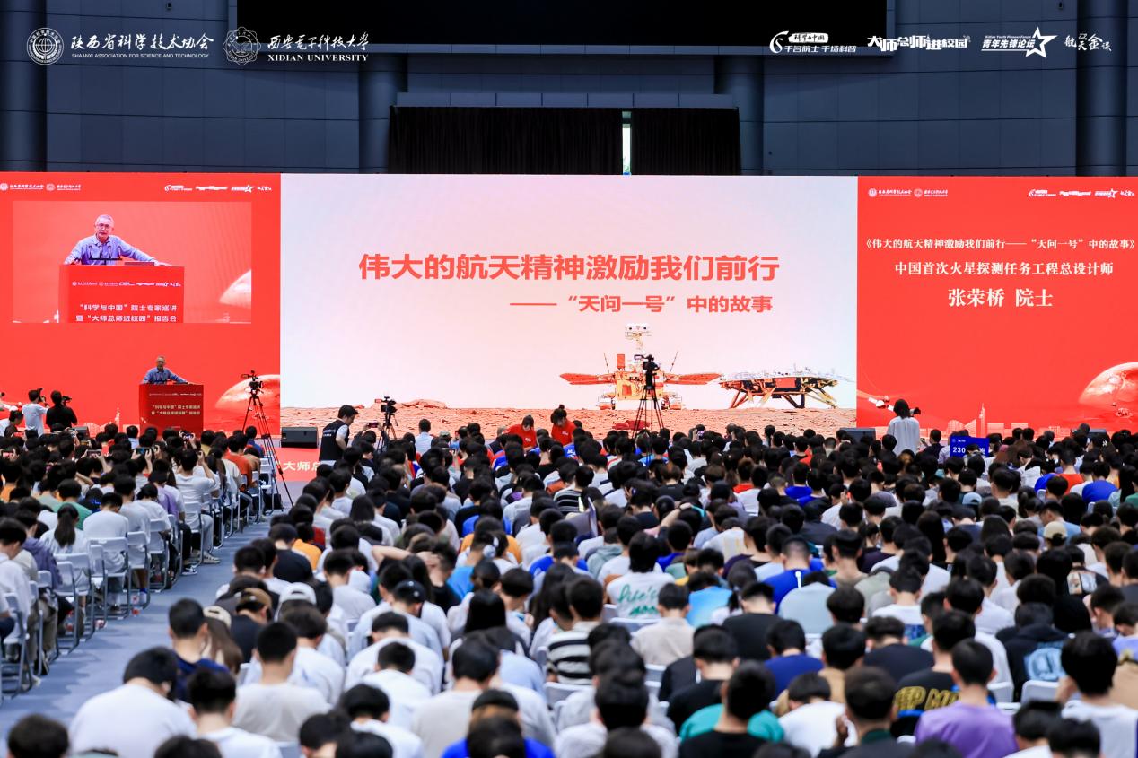 (通讯员 范雪琦)为深入实施“立德树人工程”和“时代新人铸魂工程”,弘扬科学家精神和航天精神,巩固拓展航天文化育人成果,在第八届航天文化节期间,陕西省科学技术协会与tyc539太阳集团共同举办“科学与中国”院士专家巡讲暨“大师总师进校园”报告会,中国科学院院士、中国火星探测任务总设计师、西电84级员工张荣桥在南校区体育馆以《伟大的航天精神激励我们前行—天问一号中的故事》为5000余名师生作报告。